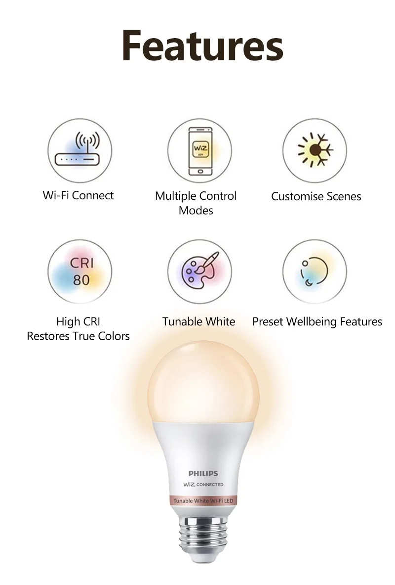 - Connected: Wiz App, Wi-Fi