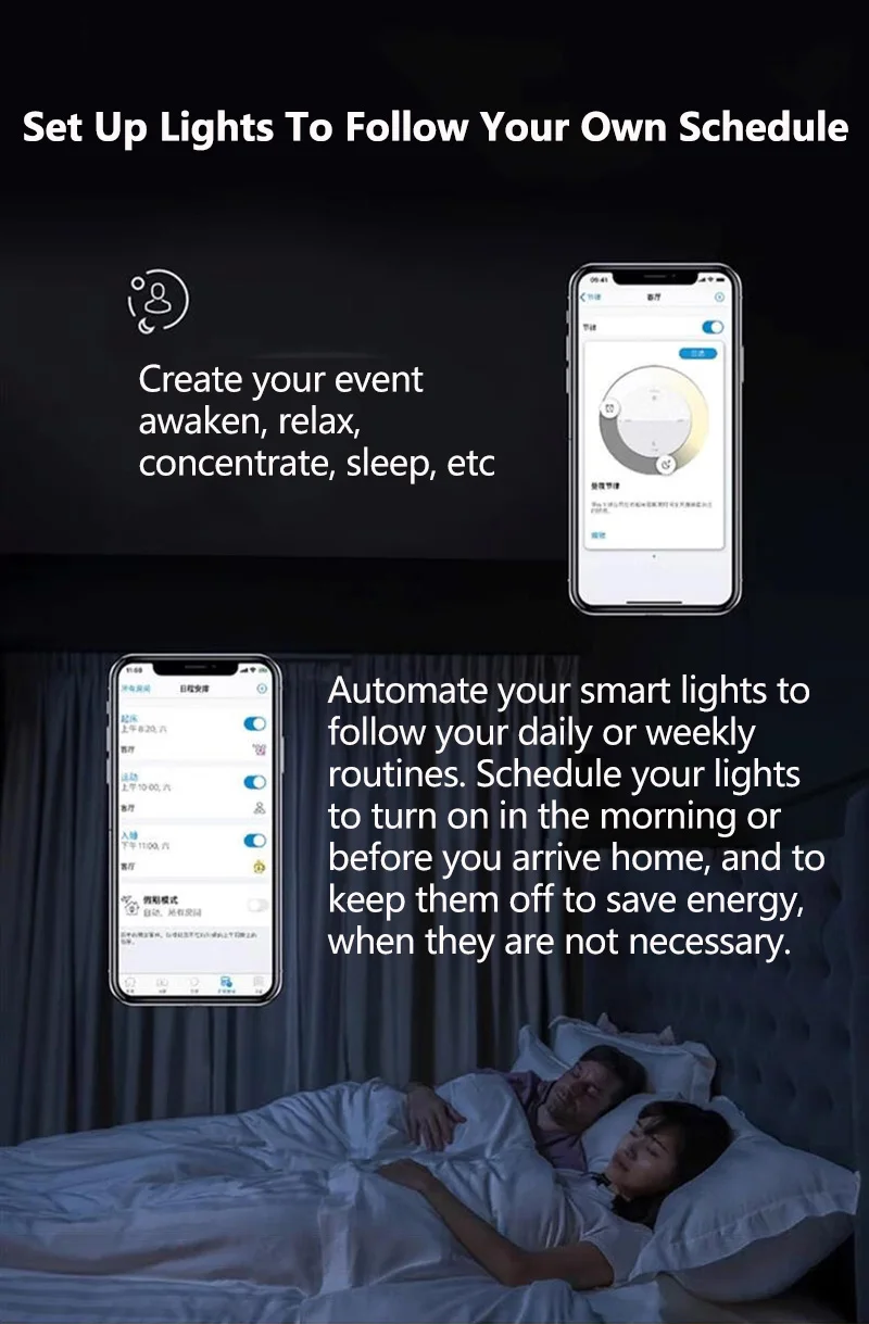 Automatez les lumières pour accrocher vos routines quotidiennes ou hebdomadaires.Programez votre lumière pour éteindre avant d’arrivée à la maison et le continuer lorsque vous avez pas nécessaire.