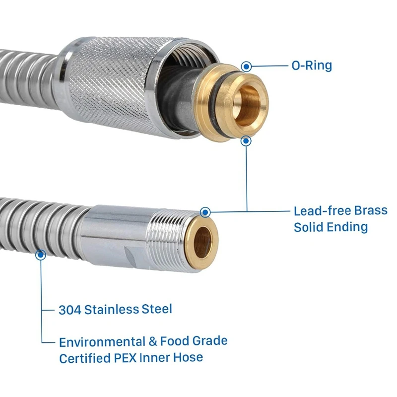 Durabilité supérieure et résistance aux fuites : construit à partir d’acier inoxydable 304 de haute qualité, de laiton et d’un tuyau intérieur PEX, notre produit offre une résistance exceptionnelle à la rouille et au plomb.Sa flexibilité et ses matériaux robustes garantissent une performance durable et sans fuite.
