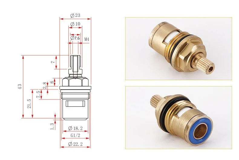 Pièces de réparation de robinet d’eau froide ou chaude à filetage unique, 20 dents en laiton, 43mmPièces de réparation de robinet d’eau froide ou chaude à filetage unique, 20 dents en laiton, 43mm
