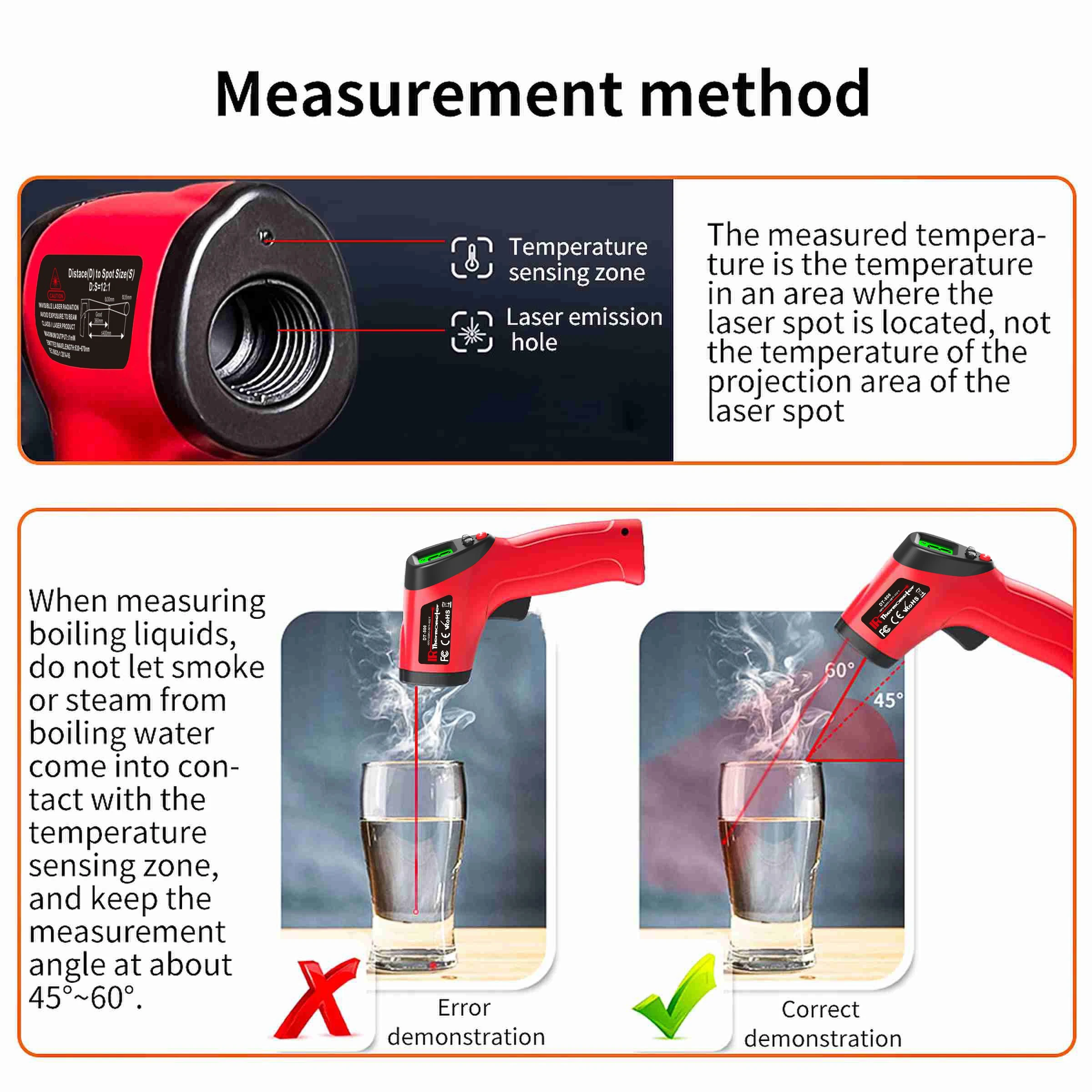 1.Plage de température : -50℃-500℃ (-58℉-932℉)