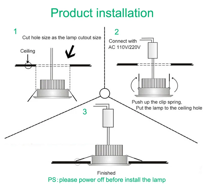 Taille: 3W 5W: diamètre 75mm/taille du trou 55-60mm