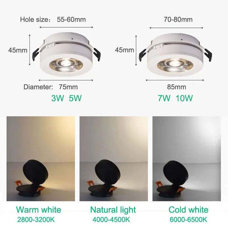 Taille: 3W 5W: diamètre 75mm/taille du trou 55-60mm