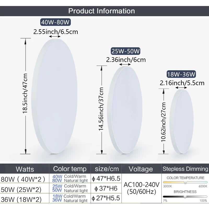 – Power:18-36W/25-50W/40-80W