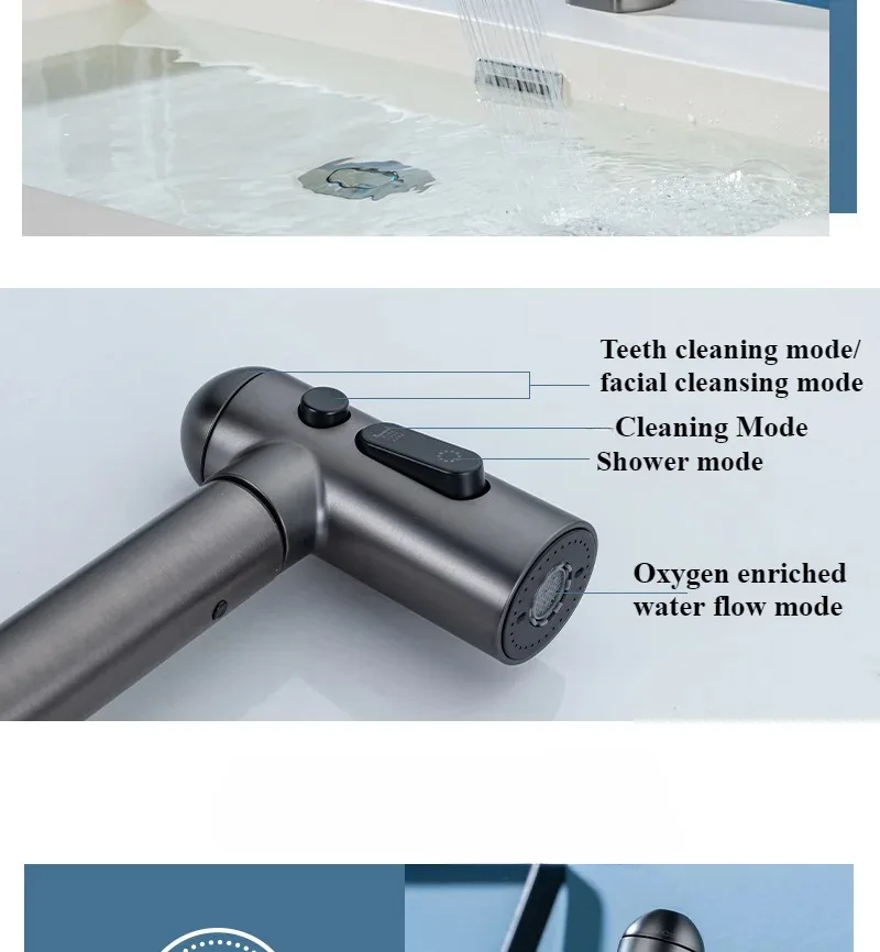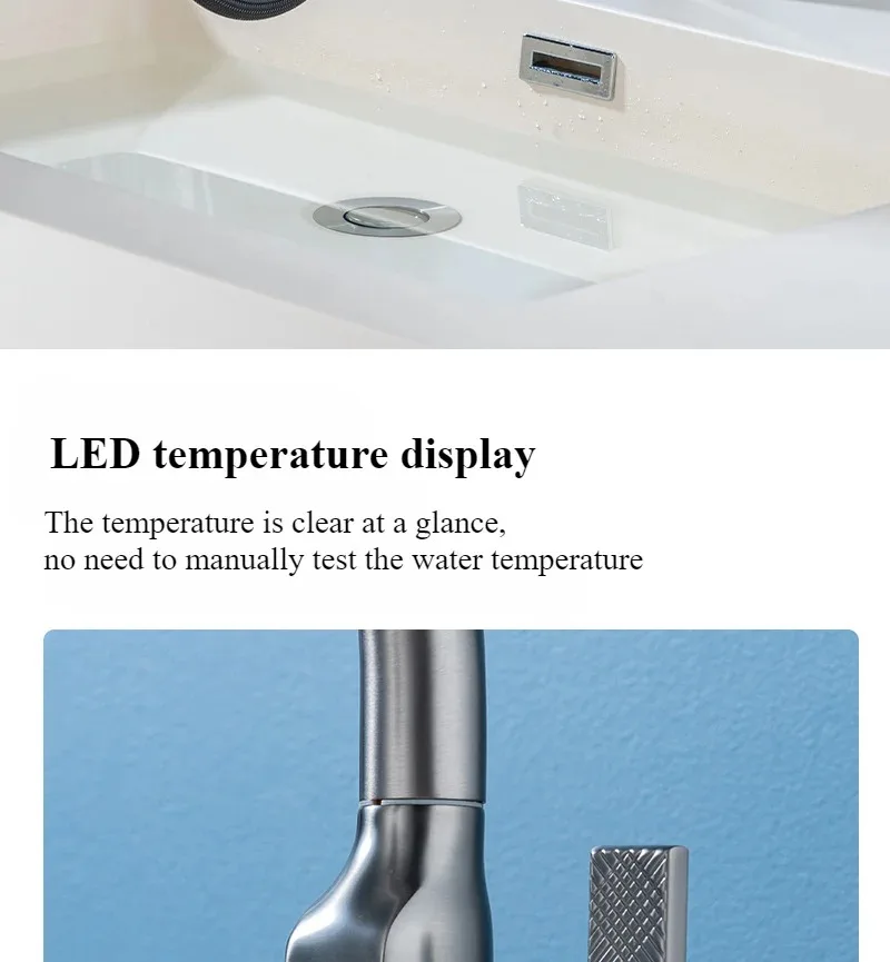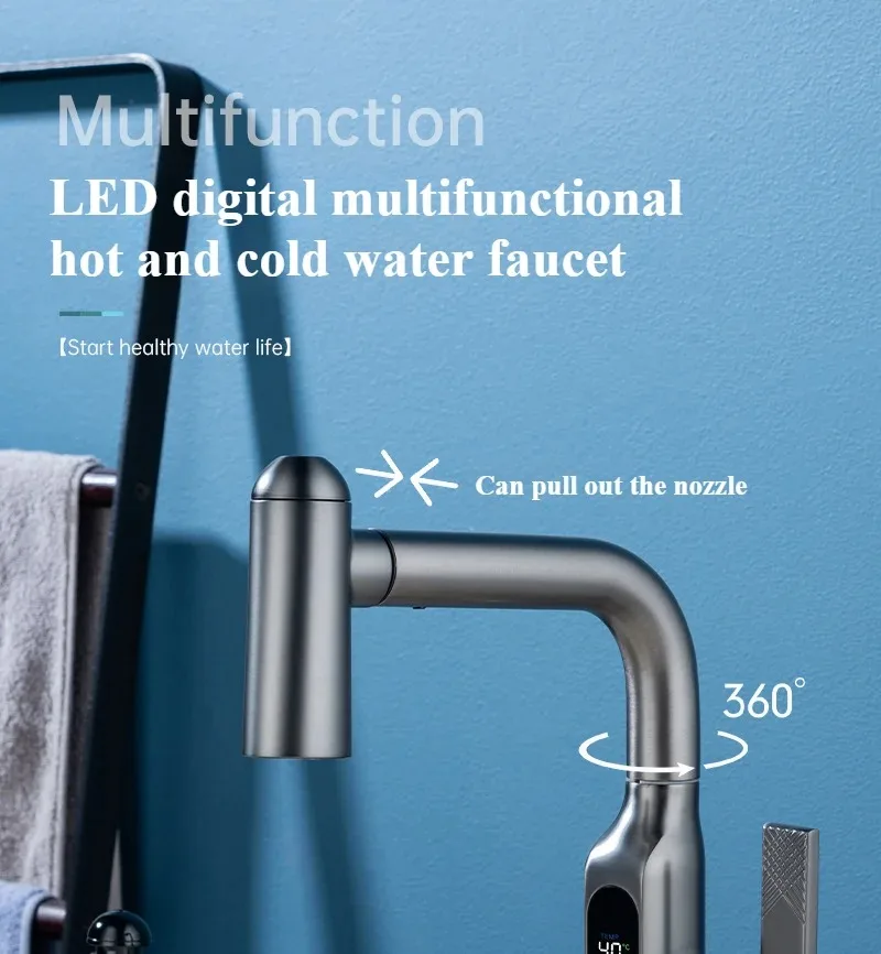 Fonction: affichage de la température à LED (uniquement disponible avec affichage numérique), double usage pour le chaud et le froid, 5 modes d’écoulement d’eau, buse pouvant être retirée