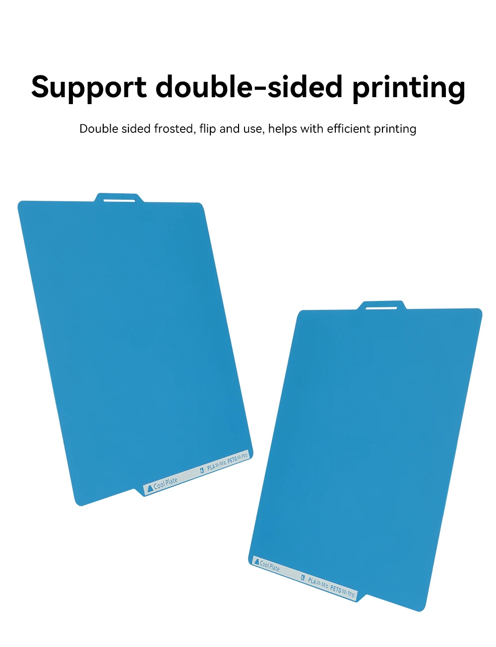 Avec un design double face givré, cette plaque d’imprimante 3D vous permet de retourner et d’imprimer sans arrêt.Maximisez votre productivité, que vous imprimiez par lots de petites pièces ou de grands modèles – pas besoin d’arrêter et de remplacer la plaque!