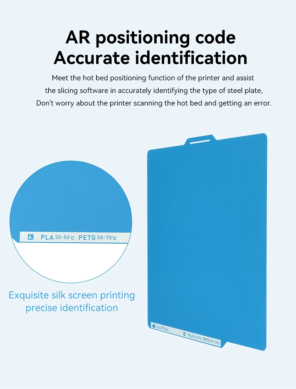 Équipé d’un code de positionnement AR, fonctionne parfaitement avec les imprimantes Bambu Lab X1, P1P et A1.Le logiciel de tranchage reconnaît instantanément la plaque, évite les erreurs de numérisation et assurer des impressions précises à chaque fois.