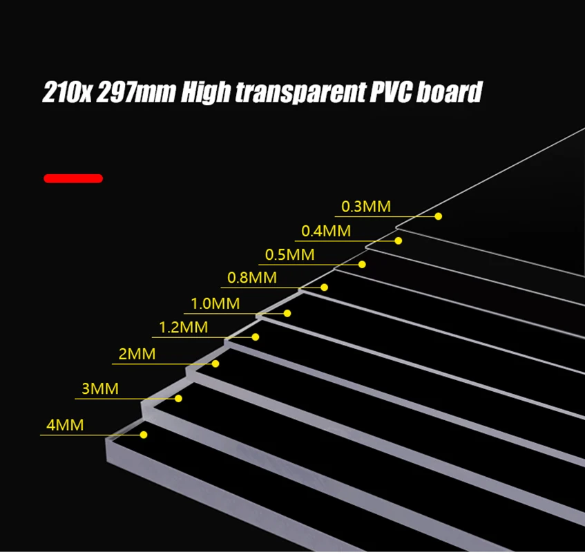 Plaque en PVC transparente 297x210mm, épaisseur 0.2mm/0.3mm/0.4mm/0.5mm/0.6mm/0.8mm/1mm/1.2mm/1.5mm/2mmPlaque en PVC transparente 297x210mm, épaisseur 0.2mm/0.3mm/0.4mm/0.5mm/0.6mm/0.8mm/1mm/1.2mm/1.5mm/2mm