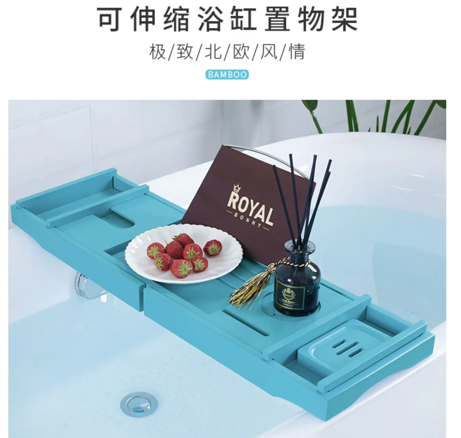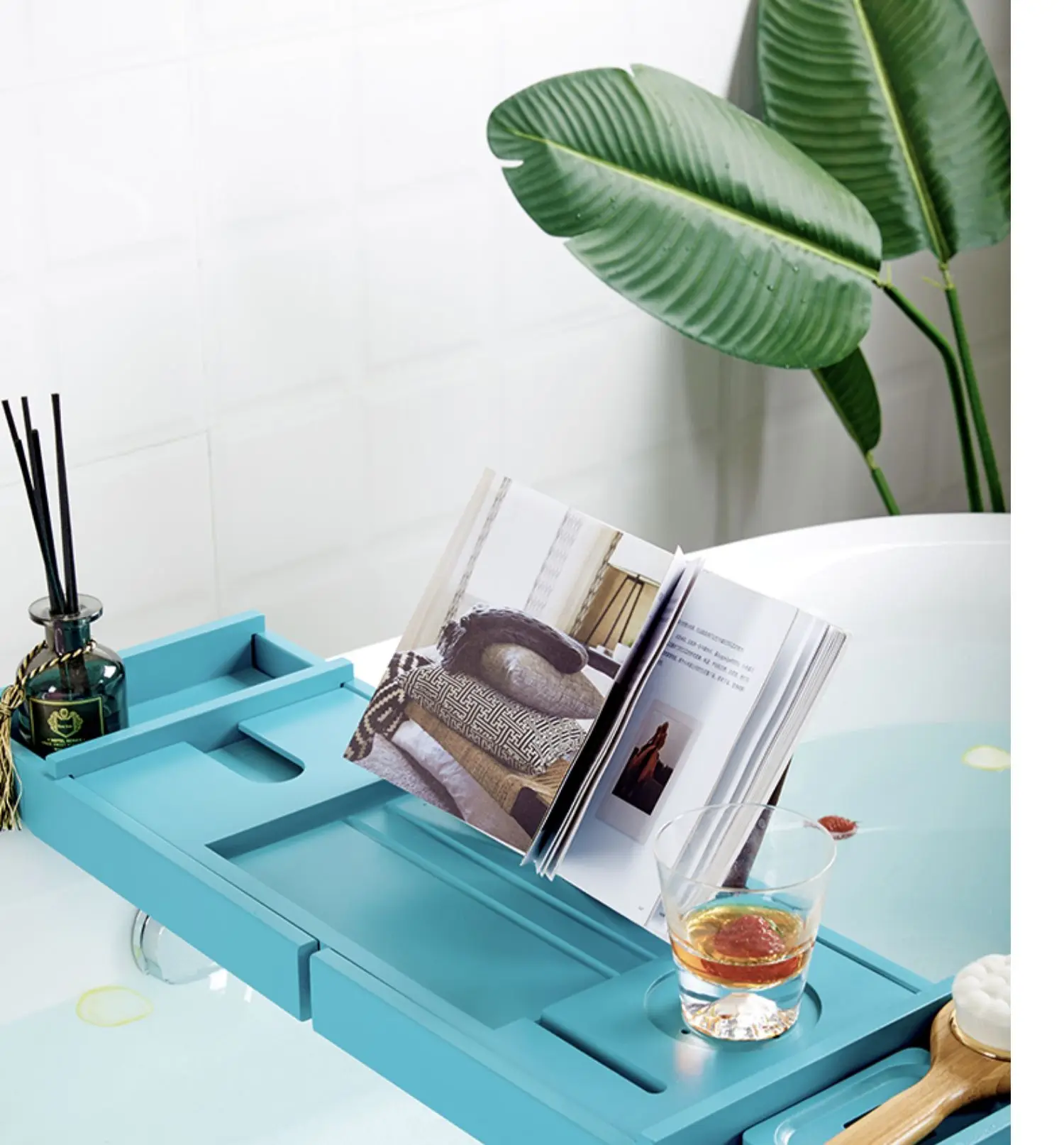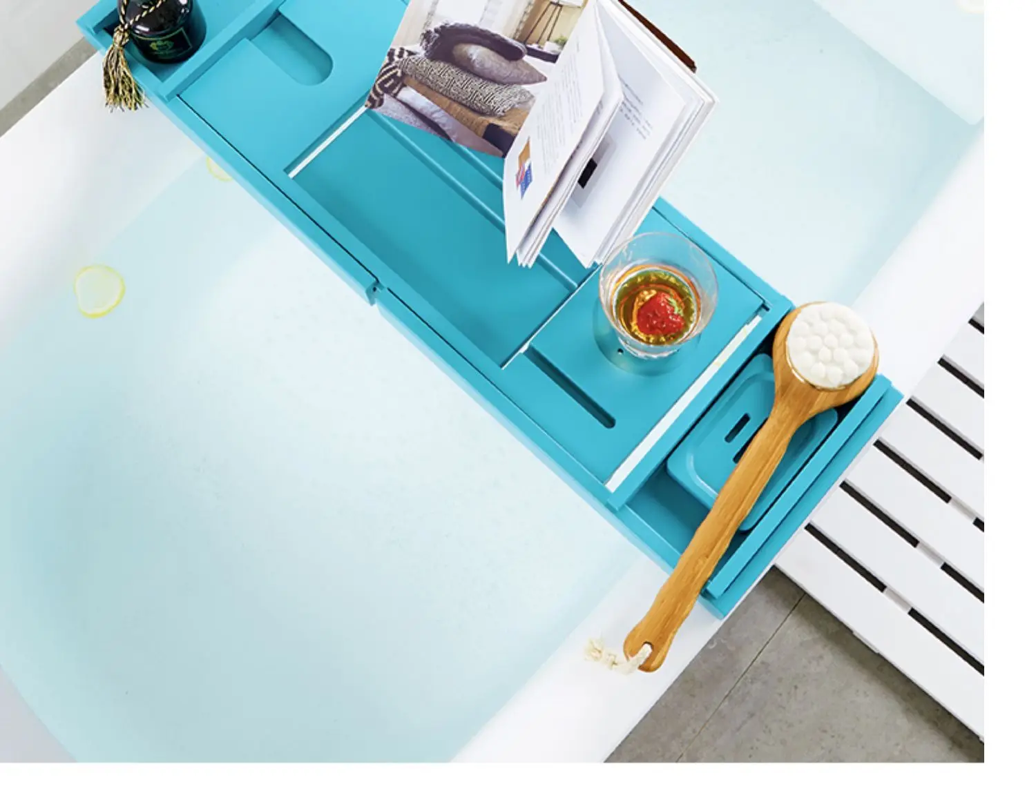 Le plateau de baignoire extensible de luxe est doté d’un support plat réglable, permettant une organisation personnalisée de vos articles de toilette.