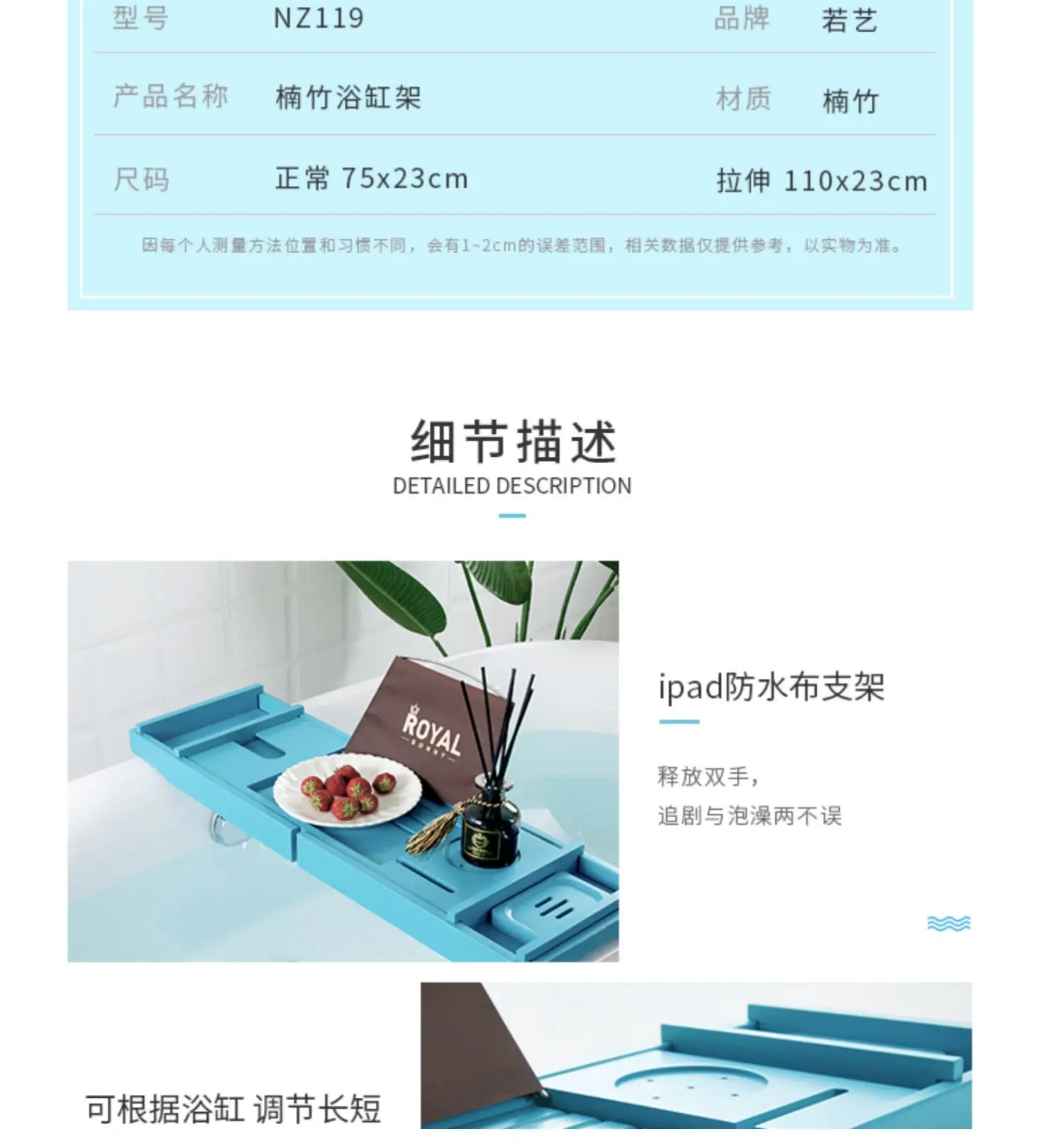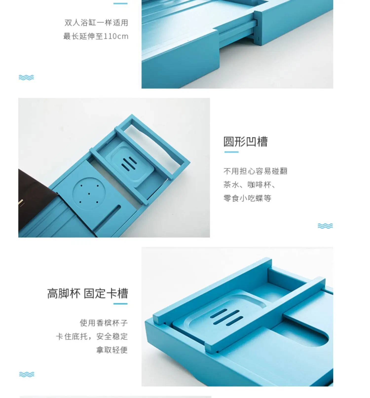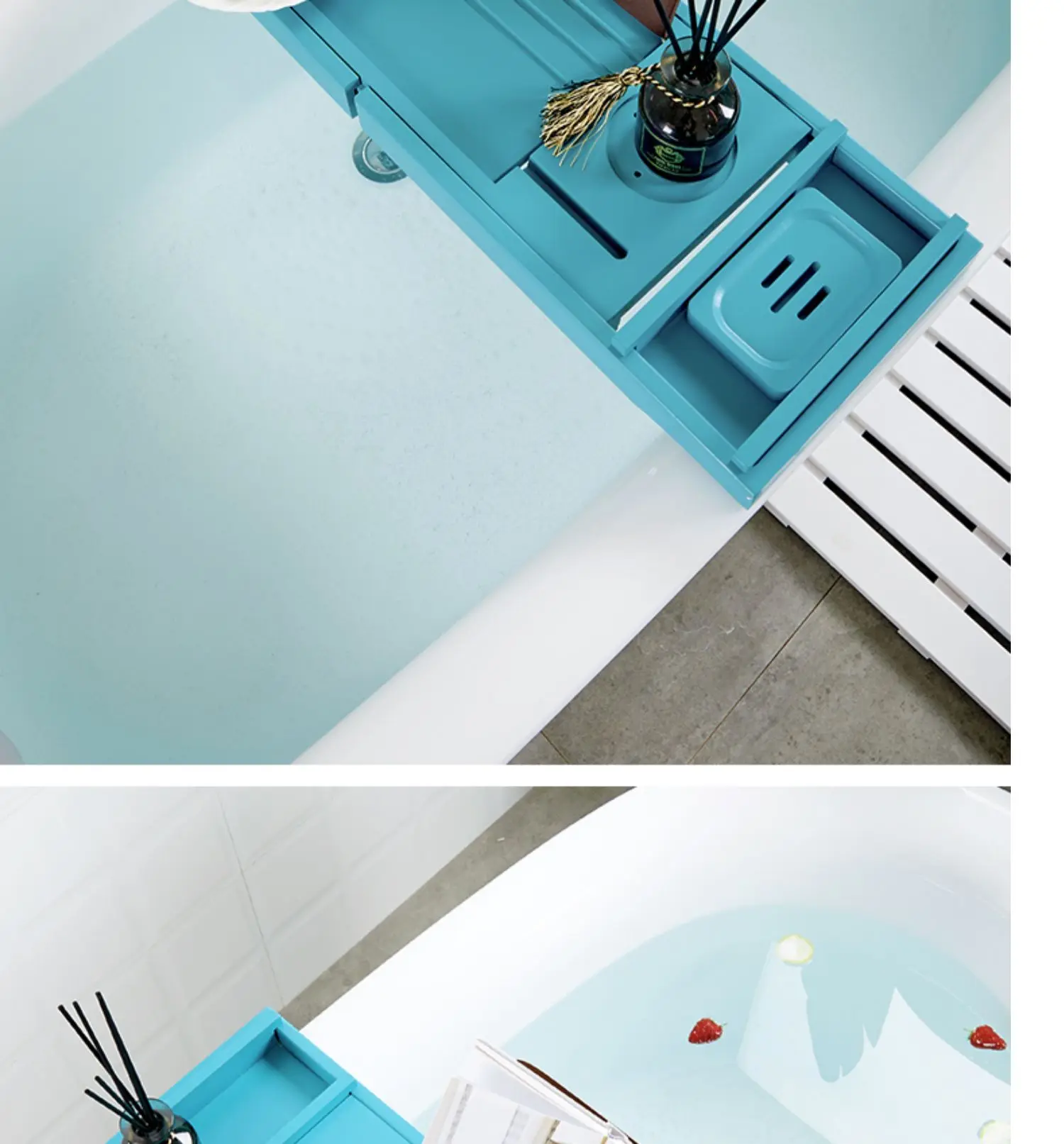 Le plateau de baignoire extensible de luxe est doté d’un support plat réglable, permettant une organisation personnalisée de vos articles de toilette.