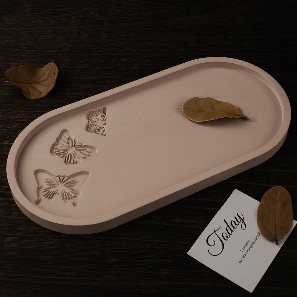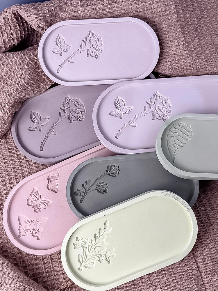 Plateau de rangement ovale, moule en ciment et Silicone, bricolage, fleur de Rose, papillon, sculpture dessous de verre, résine, béton, plâtre, décoration de maison