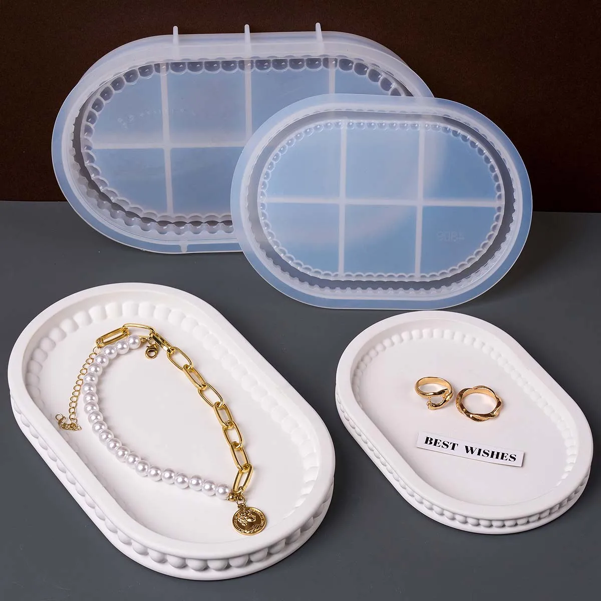 Plateau de rangement ovale, moule en Silicone, bricolage de perles à bulles, dessous de verre, fournitures de fabrication artisanale, Vase en résine de plâtre, moule de moulage de Base, décoration de maison |