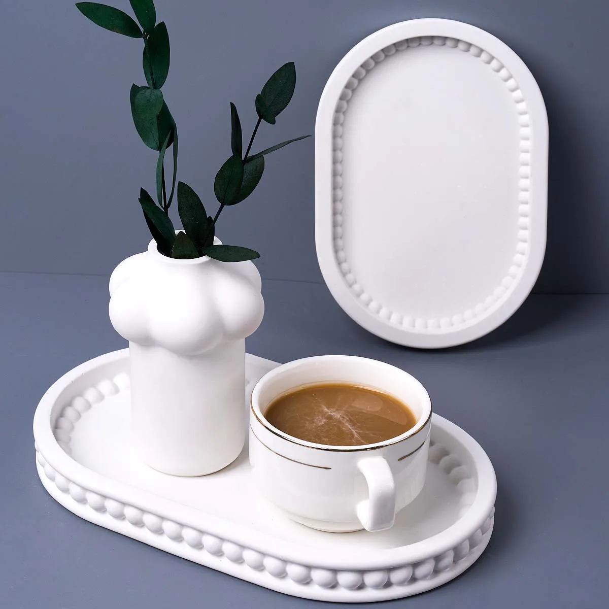 Plateau de rangement ovale, moule en Silicone, bricolage de perles à bulles, dessous de verre, fournitures de fabrication artisanale, Vase en résine de plâtre, moule de moulage de Base, décoration de maison