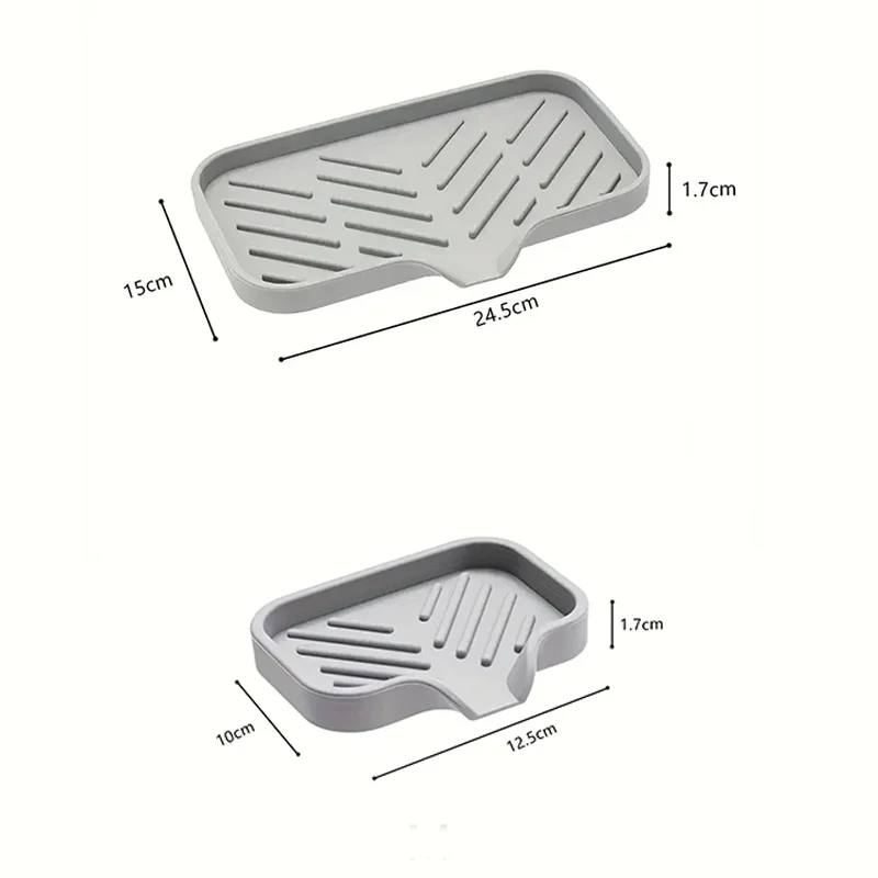• Conception multifonctionnelle :Ce produit sert de tapis de robinet, de plateau d’évier, de distributeur de savon, de tampon de vidange en éponge et de plateau de rangement de comptoir.Sa polyvalence permet d’économiser de l’espace sur le comptoir et d’améliorer l’efficacité de la cuisine.
