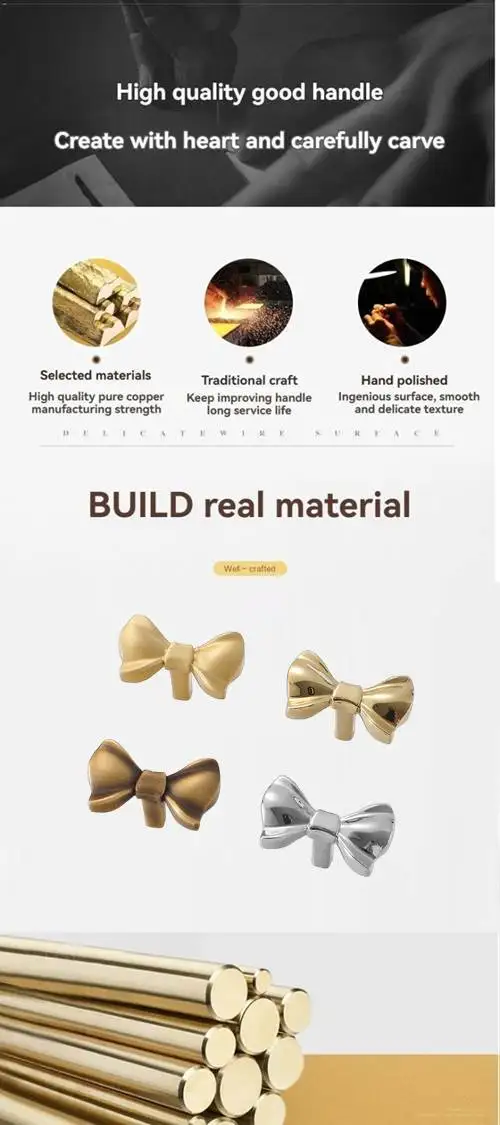 - Name: French luxury brass bow cabinet door handle