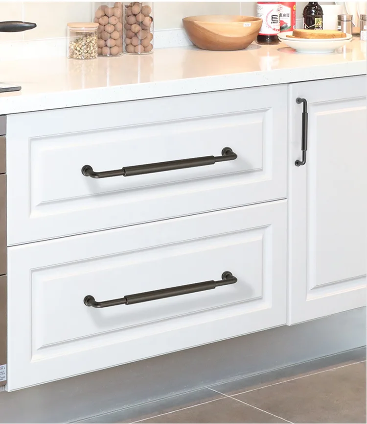 128 192mm moderne Simple mode en laiton brossé armoires de cuisine armoire porte poignée tache Nickel noir placard tiroir bouton tirer