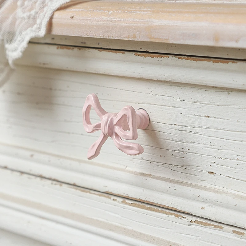 Poignée de porte en métal avec nœud papillon rose, poignée de meuble Foy, armoire en verre, décoration de la maison, 2 pièces