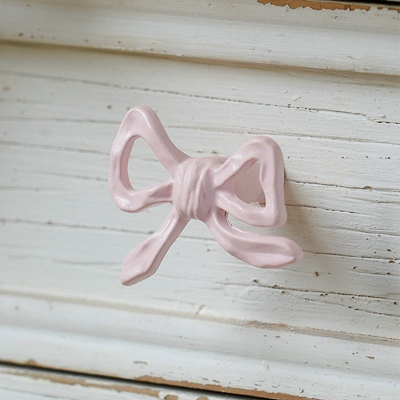 Poignée de porte en métal avec nœud papillon rose, poignée de meuble Foy, armoire en verre, décoration de la maison, 2 piècesPoignée de porte en métal avec nœud papillon rose, poignée de meuble Foy, armoire en verre, décoration de la maison, 2 pièces