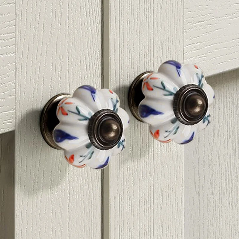 Nom du produit: poignée d’armoire de tiroir citrouille bleu blanc à trou unique en céramique