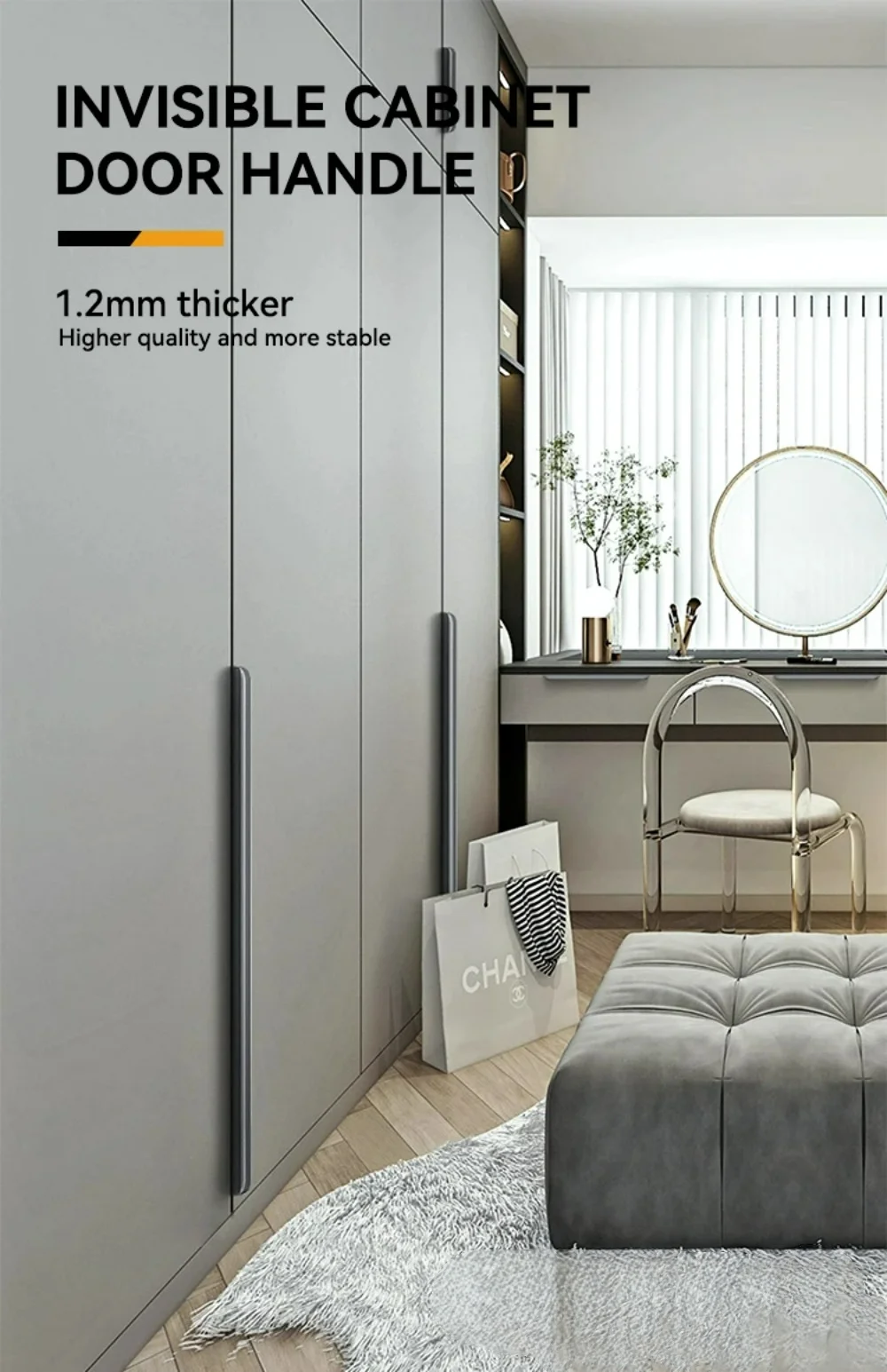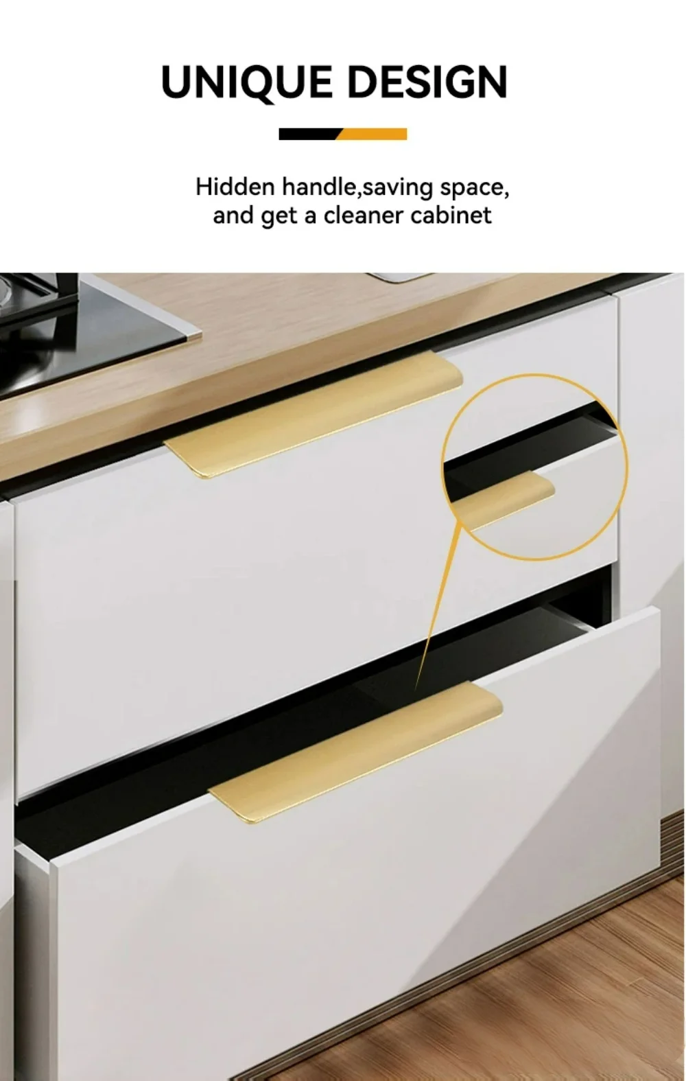 Poignées d'armoire cachées, poignées de placard de cuisine, boutons de tiroir, poignées en alliage d'aluminium pour meubles, poignées de meubles longues, quincaillerie