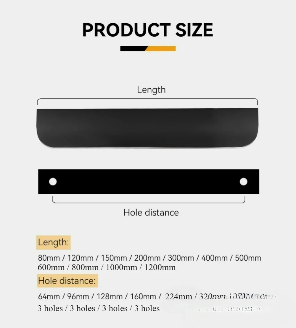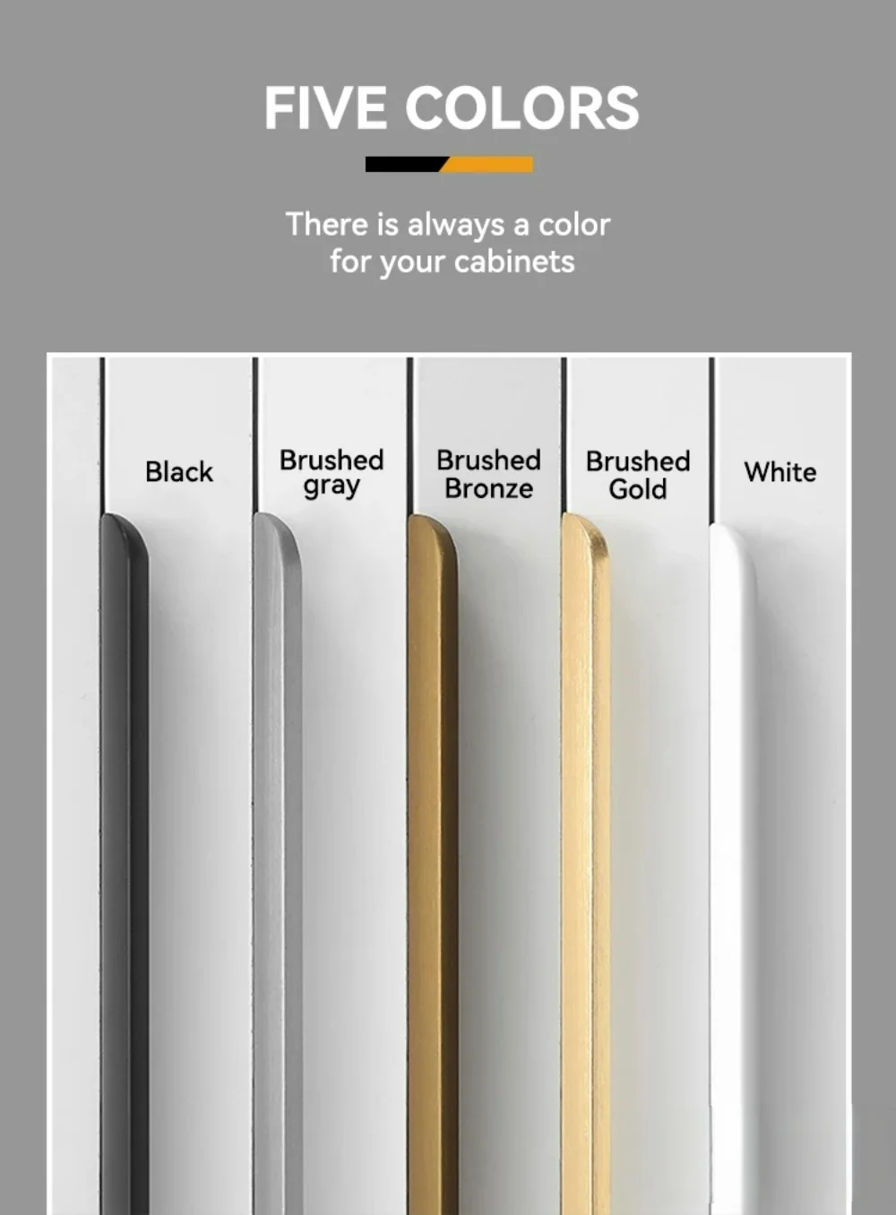 -This is not only a practical handle, but also a decorative piece for the cabinet!-Thickened and weighted, more solid and thicker, not easy to deform during transportation.-Width 40mm, increase the grip distance-Five colors to choose from, Black/White/Brushed Gold/Brushed Grey/Brushed Bronze, there is always a color you like!-10 sizes, 120mm-1200mm, no matter how big your cabinet is, there will be a size that fits!