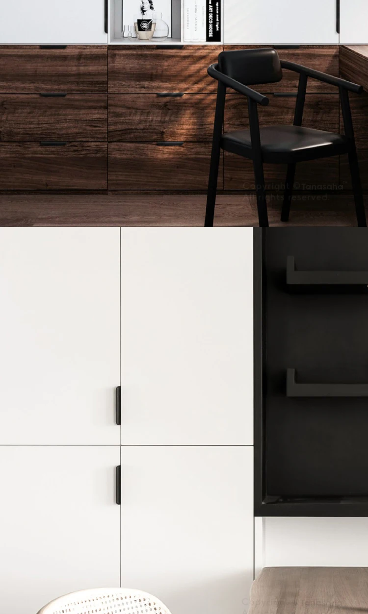 les poignées noires adaptées aux armoires de couleur claire