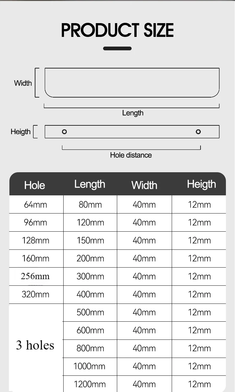 centre à centre : 64 mm/96 mm/128 mm/160 mm/256 mm/320 mm/3 trous/ 3 trous/3 trous/3 trous/3 trous