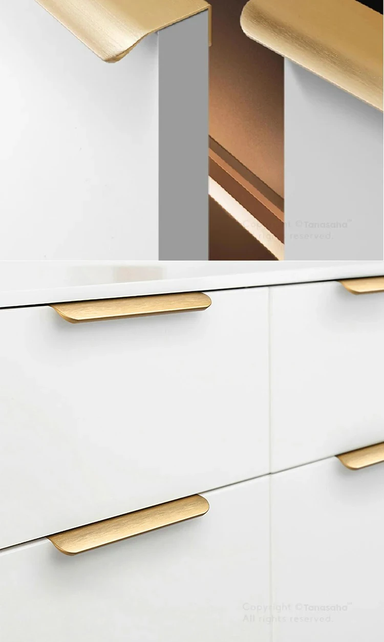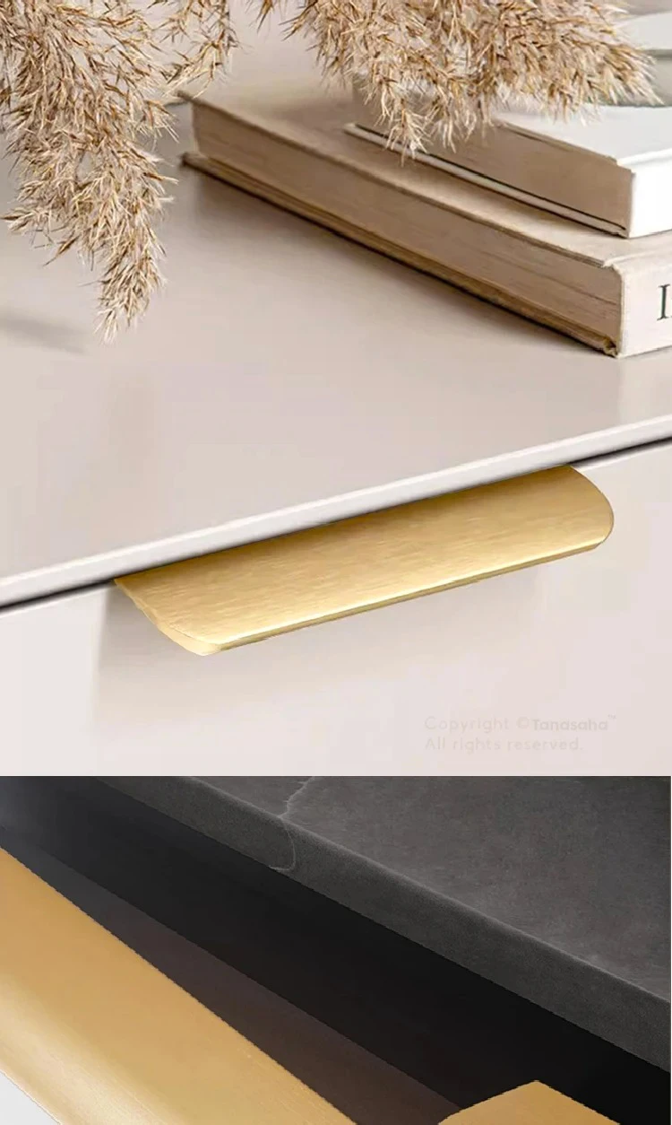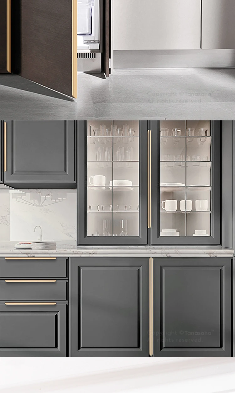 les poignées dorées adaptées aux armoires de couleur foncée (comme sur l’image montrée)