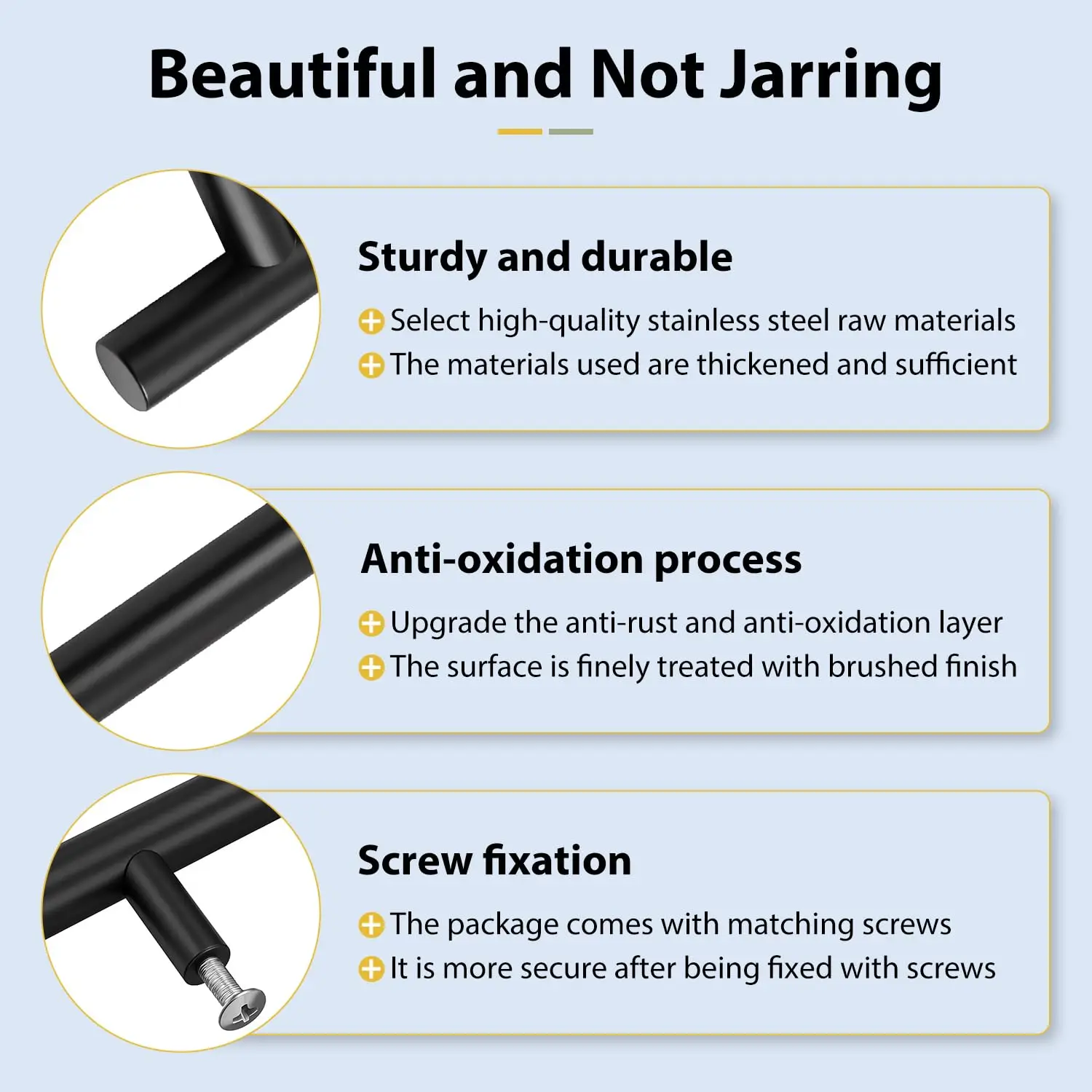 Nos poignées de cuisine noires de qualité supérieure avec barre en T sont fabriquées en acier inoxydable brossé de haute qualité, offrant une durabilité, une résistance à la corrosion, une surface lisse résistante aux empreintes digitales et un attrait élégant, chacune emballée individuellement pour éviter les rayures, complète avec des vis de longueur standard pour Installation rapide et facile à l’aide d’outils courants ; Assez polyvalents pour s’adapter aux tiroirs de cuisine, aux portes d’armoires, aux armoires de salle de bain et bien plus encore, ils complètent parfaitement les intérieurs modernes et traditionnels, alliant un style intemporel avec une fonctionnalité fiable pour tous vos besoins en matière de matériel domestique.