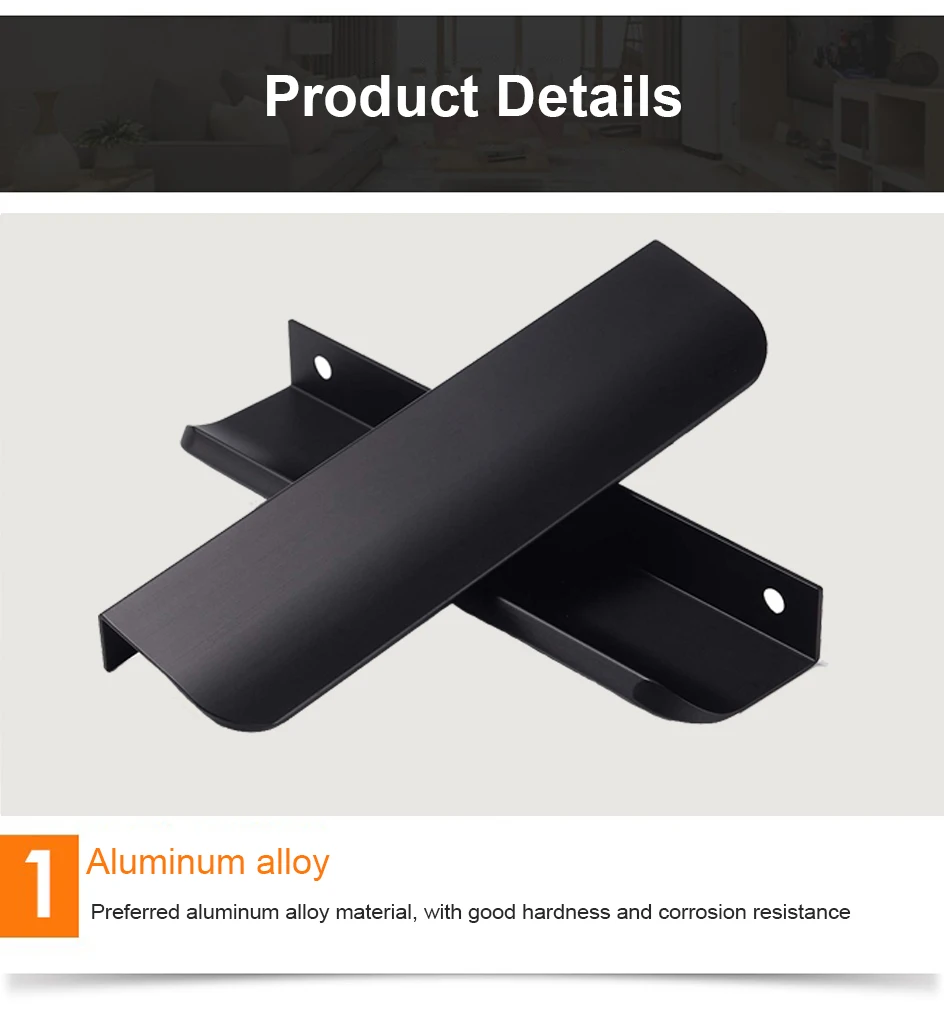 Poignées de tiroir de meubles cachées, porte d’armoire de cuisine, poignée noire en alliage d’aluminium, Style moderne, bord des doigts, poignées de garde-robePoignées de tiroir de meubles cachées, porte d’armoire de cuisine, poignée noire en alliage d’aluminium, Style moderne, bord des doigts, poignées de garde-robe