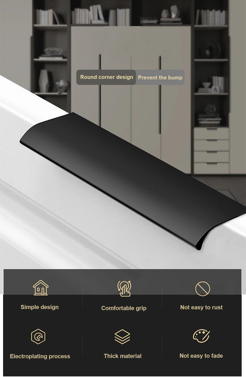 Poignées de tiroir de meubles cachées, porte d'armoire de cuisine, poignée noire en alliage d'aluminium, Style moderne, bord des doigts, poignées de garde-robe