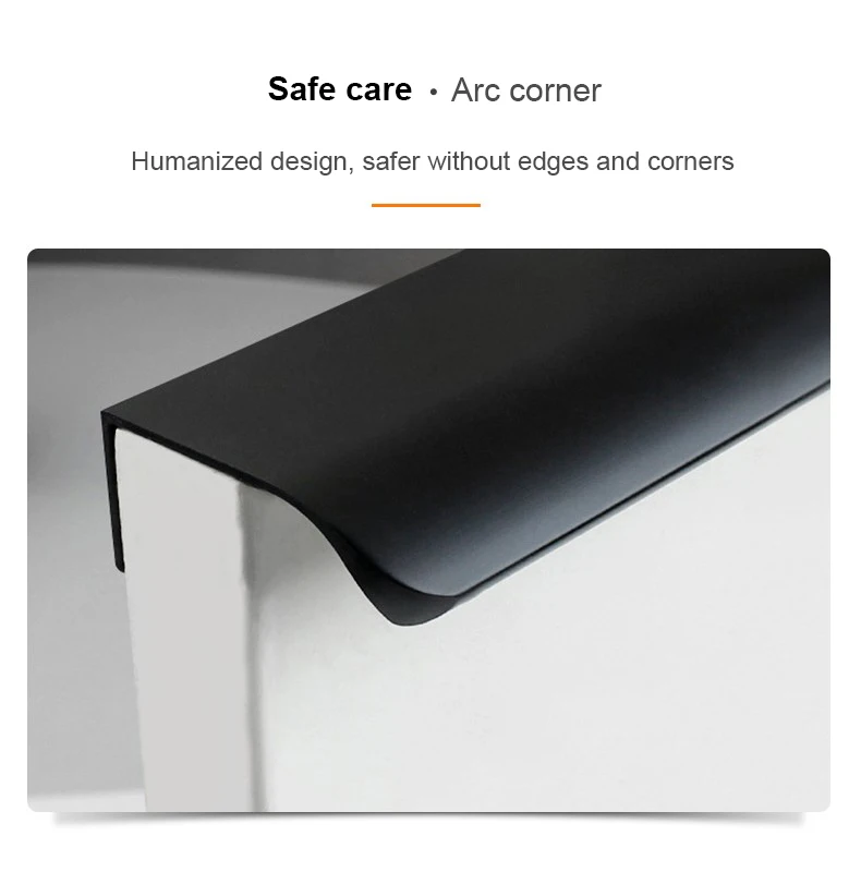 【Design d’angle spécial】 La poignée de meuble dissimulée est en alliage d’aluminium, conception incurvée sans bords tranchants, pas de risque d’enjurie et pas d’empreintes digitales, maintient la sécurité des enfants.
