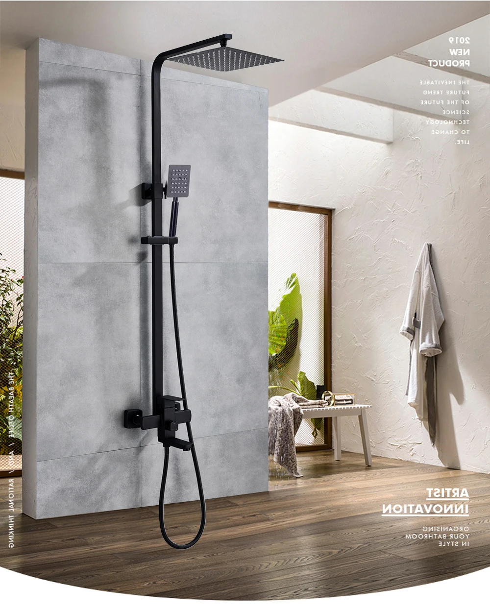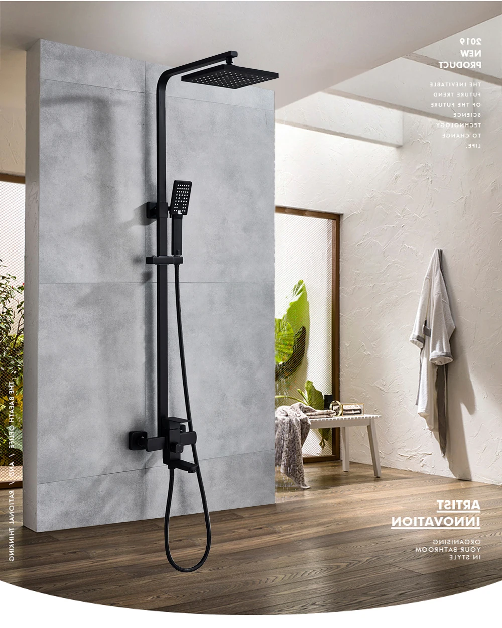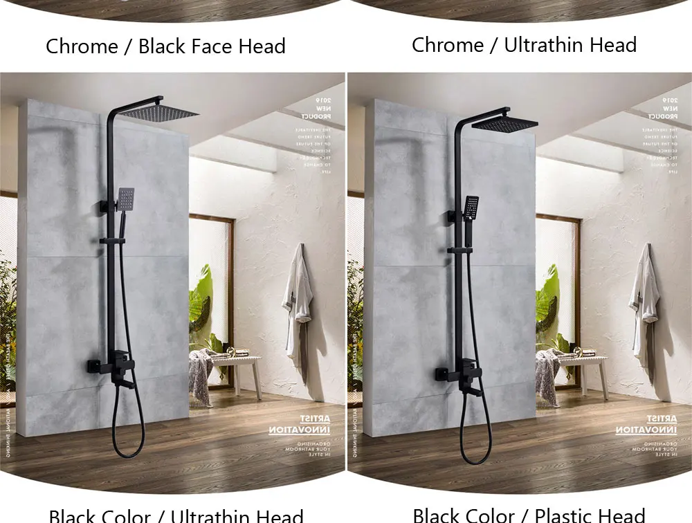 - black shower set: bathroom and shower faucets