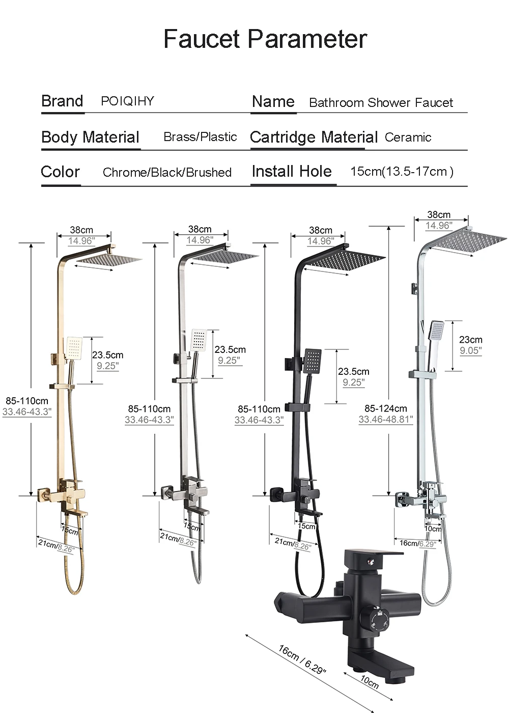 - Matte black shower faucet: shower head and hand shower are plastic