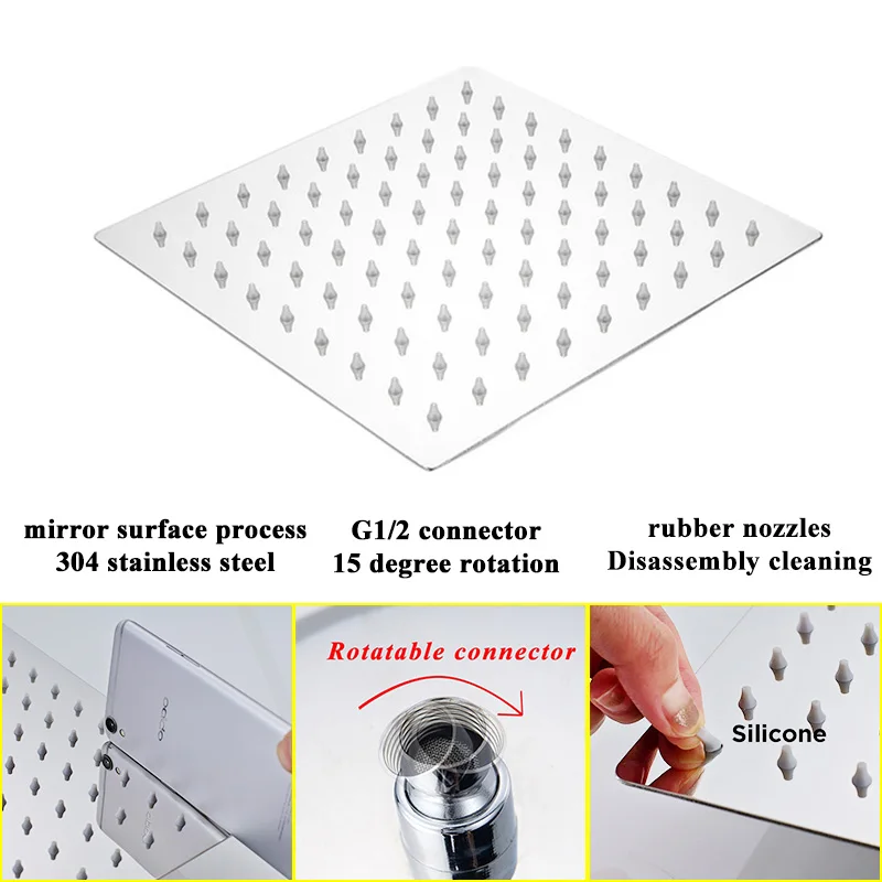 Pommeau de douche en acier inoxydable, 40x40cm, 16 pouces, pomme de douche Ultra-mince, finition chromée, douche de pluie carrée, plafond, pulvérisateur mural, accessoires de douche de haute qualité
