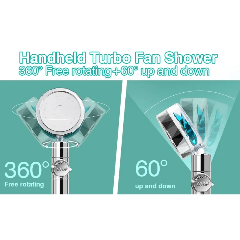Pommeau de douche haute pression, Rotation à 360 degrés, turboventilateur portatif, pomme de douche à Injection hydraulique, accessoires de salle de bains
