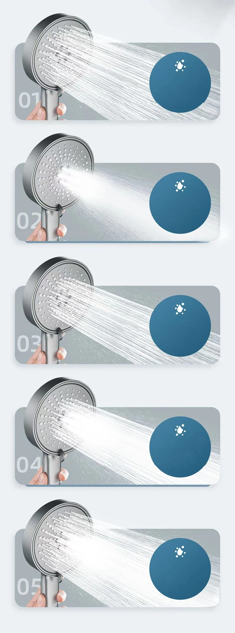 5 modes, douche, salle de bain, pomme de douche, pomme ronde, pomme de douche haute pression, robinet de salle de bain, accessoires de douche, accessoires de toilette salle de bain, douche portable, grand, économie de pluie, douches d’artichauts, ensemble de douche, accessoires de salle de bain accessoires complets
