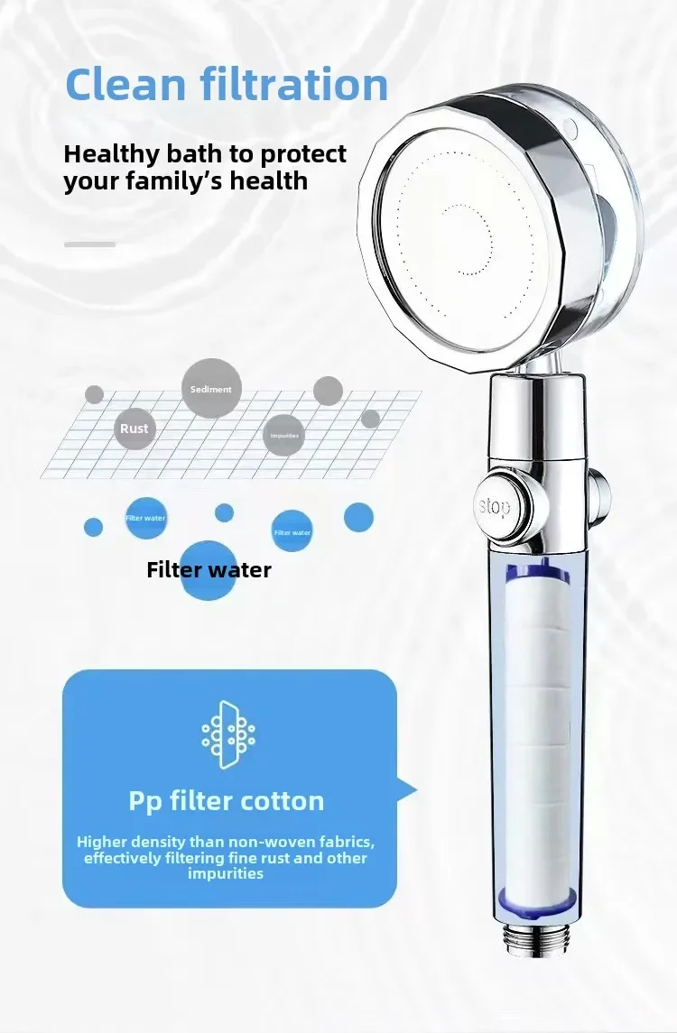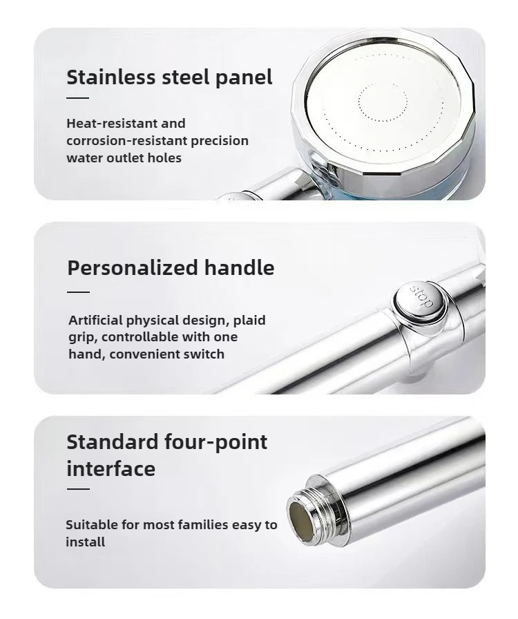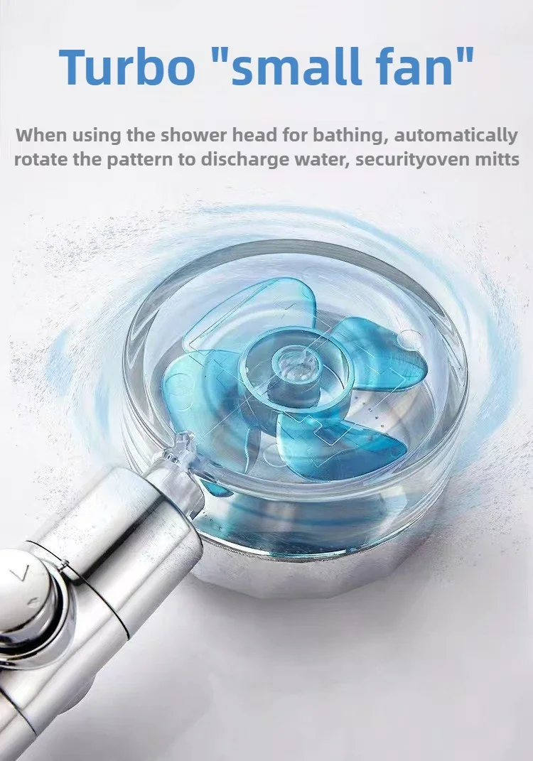 Pommeau de douche à économie d'eau, pomme de douche à flux d'hélice Turbo haute pression avec ventilateur, filtre intégré, accessoires de salle de bains à pluie