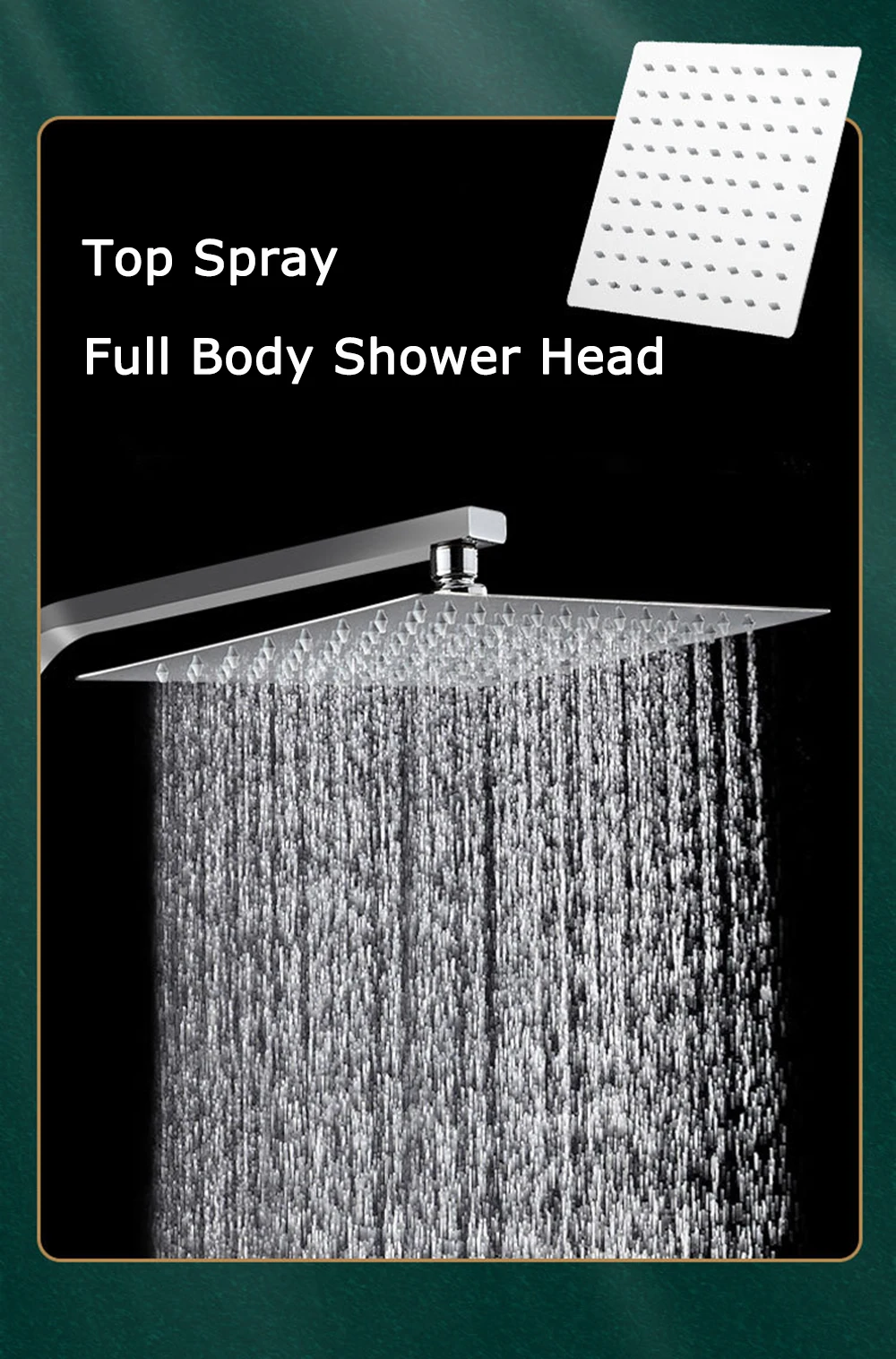 Pommeau de douche à effet de pluie 12/10/8 pouces, pomme de douche cascade Ultra fine en acier inoxydable 201 carrée, accessoires de salle de bains