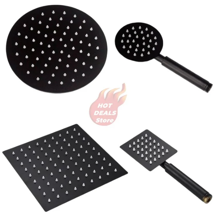 Pommeau de douche à effet de pluie Ultra-fin, rond et carré, en acier inoxydable noir mat, 6 « /8″/10 « /12 », pomme de douche à main/extension, accessoires de salle de bains, nouveau