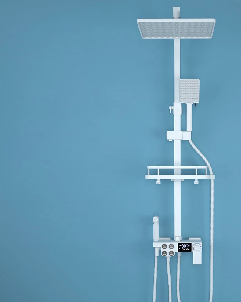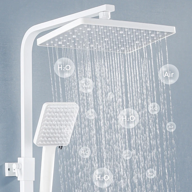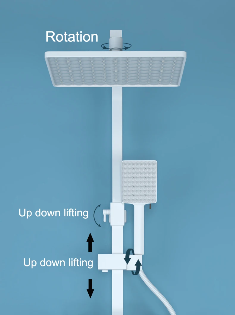 【Réglable en hauteur】La hauteur de la colonne de douche et de la douchette peut être ajustée pour répondre aux exigences de différentes hauteurs. Vous pouvez librement ajuster la tringle de douche à la hauteur que vous voulez