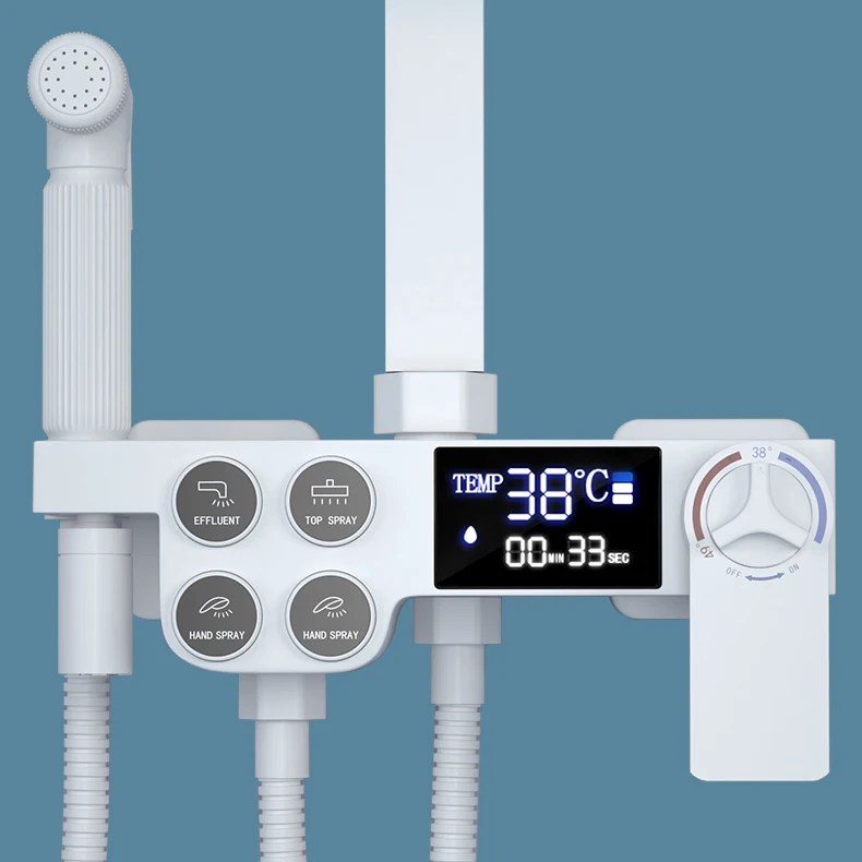 【 4 sorties d’eau 】Les touches du piano sont contrôlées indépendamment, le jet supérieur/à main/bec de bidet/robinet de baignoire, chaque sortie d’eau a un interrupteur correspondant, les fonctions clés sont clairement indiquées (4 sorties d’eau ne peuvent pas fonctionner en même temps)