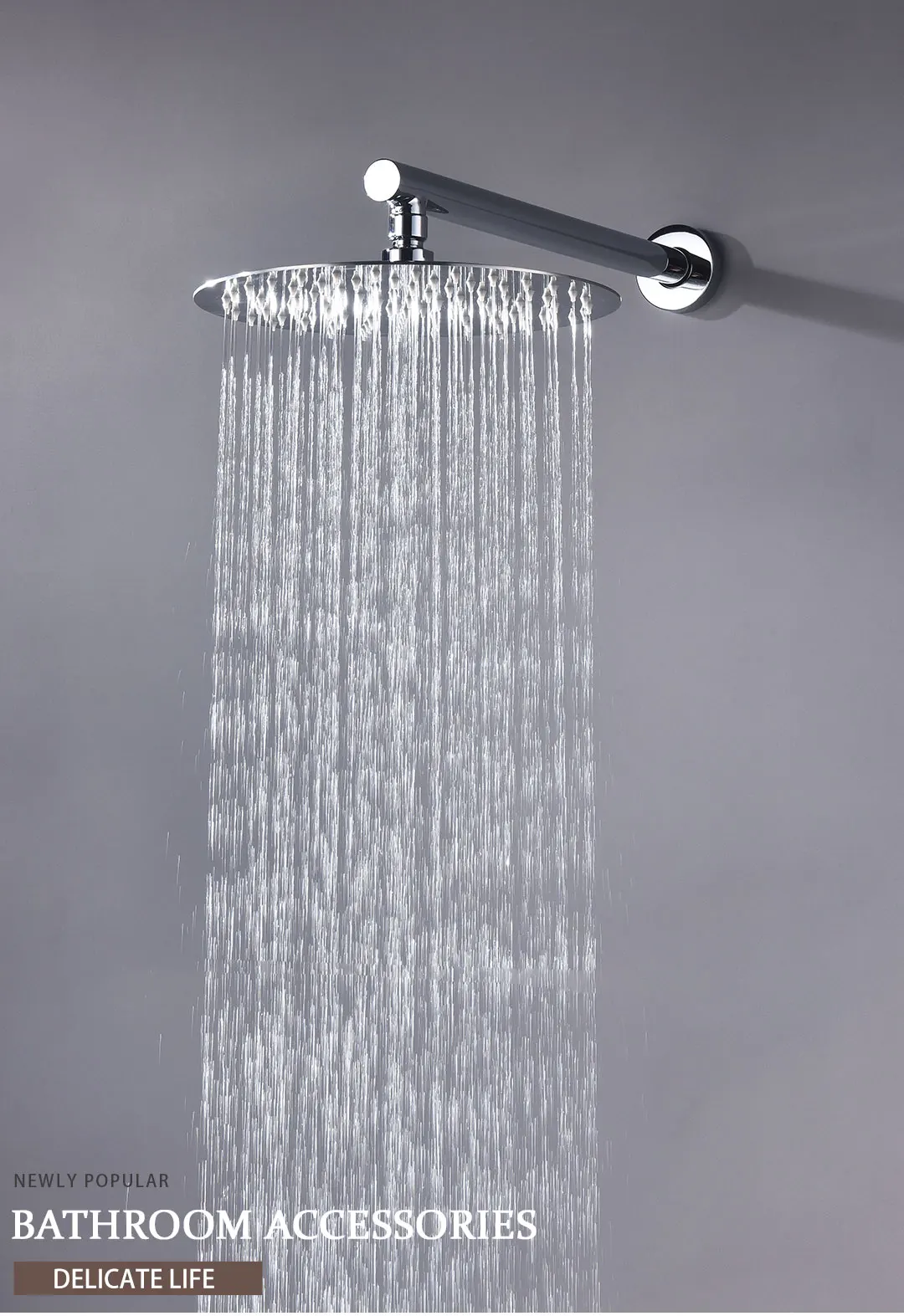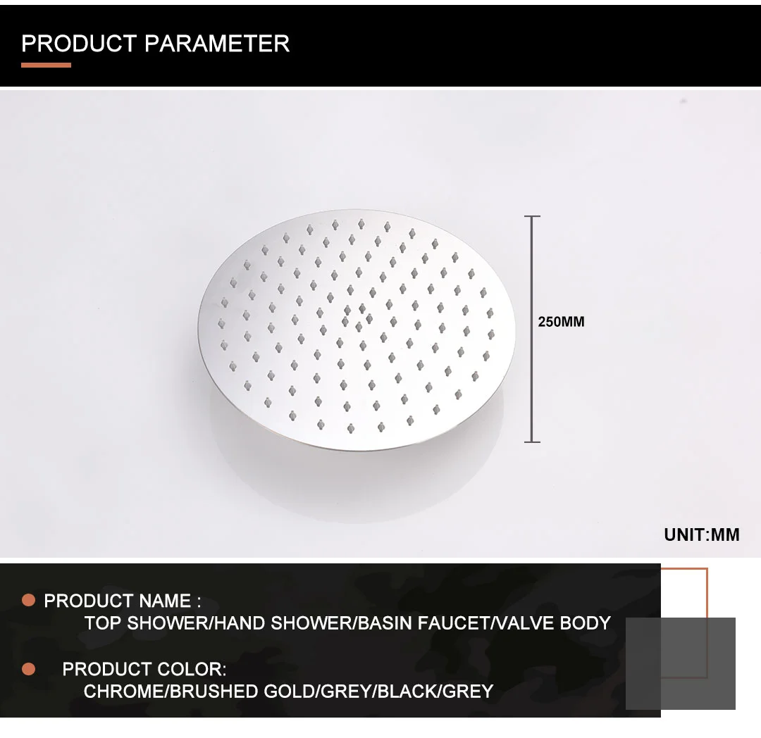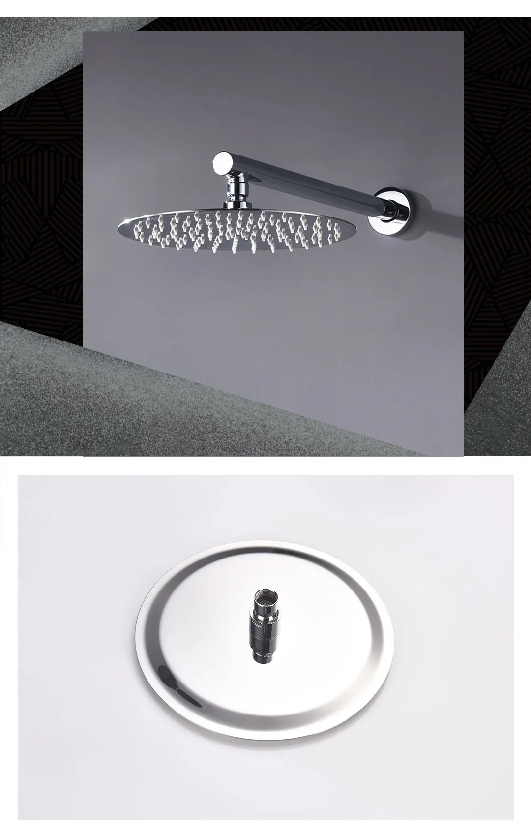 Chrome rond 10 pouces 304 acier inoxydable pluie pommeau de douche salle de bain accessoire mural bras de douche accessoires