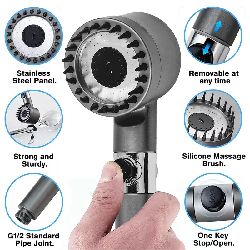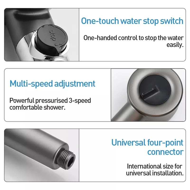 Changement de bouton marche/arrêt: cette fonction de pause est très utile, surtout lorsque vous lavez vos cheveux et que vos yeux sont à peine ouverts, de sorte que vous ne pouvez pas facilement atteindre l’interrupteur du robinet de douche. Ce pommeau de douche à haute pression avec vanne d’arrêt résoudra parfaitement ce problème. Cela évite de fermer la vanne ou de réajuster la température de l’eau au milieu.