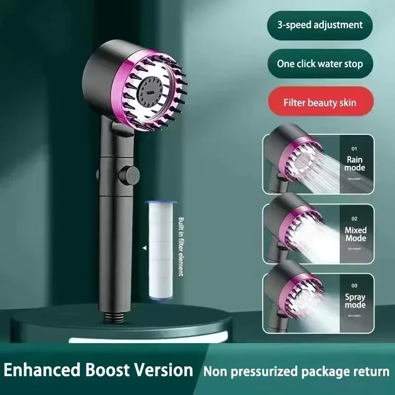 Pommeau de douche à filtre haute pression, Spray réglable à 3 modes avec brosse de Massage, ensemble de douche de pluie, filtre variable, nouveau 2025