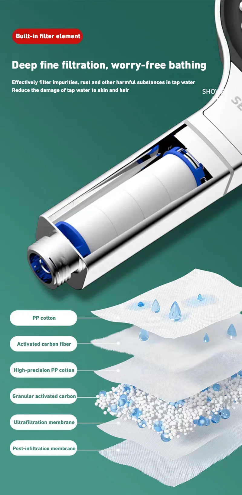【Artisanat】- Paraire d’autres pommes de douche à filtre ordinaire, les pommes de douche à filtre sont conçues avec des buses en silicone anti-colmatage.Il vous donnez une expérience meilleure