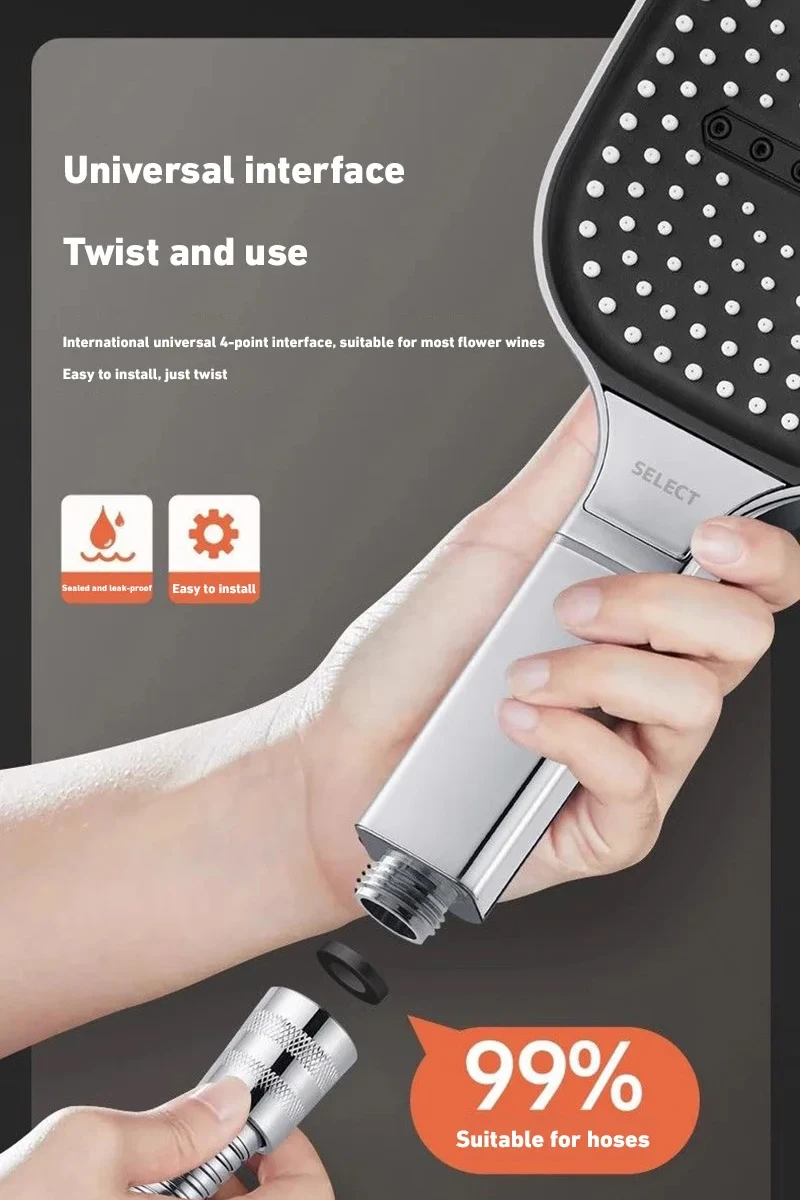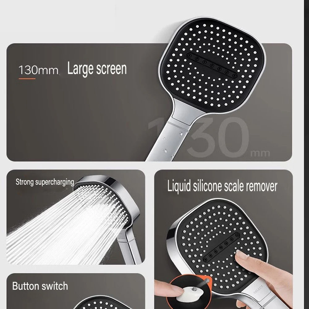 Pommeau de douche à grand panneau de 13cm, 3 modes, superchararge, pomme de douche à pluie, haute pression, robinet de douche à main, accessoires de salle de bains