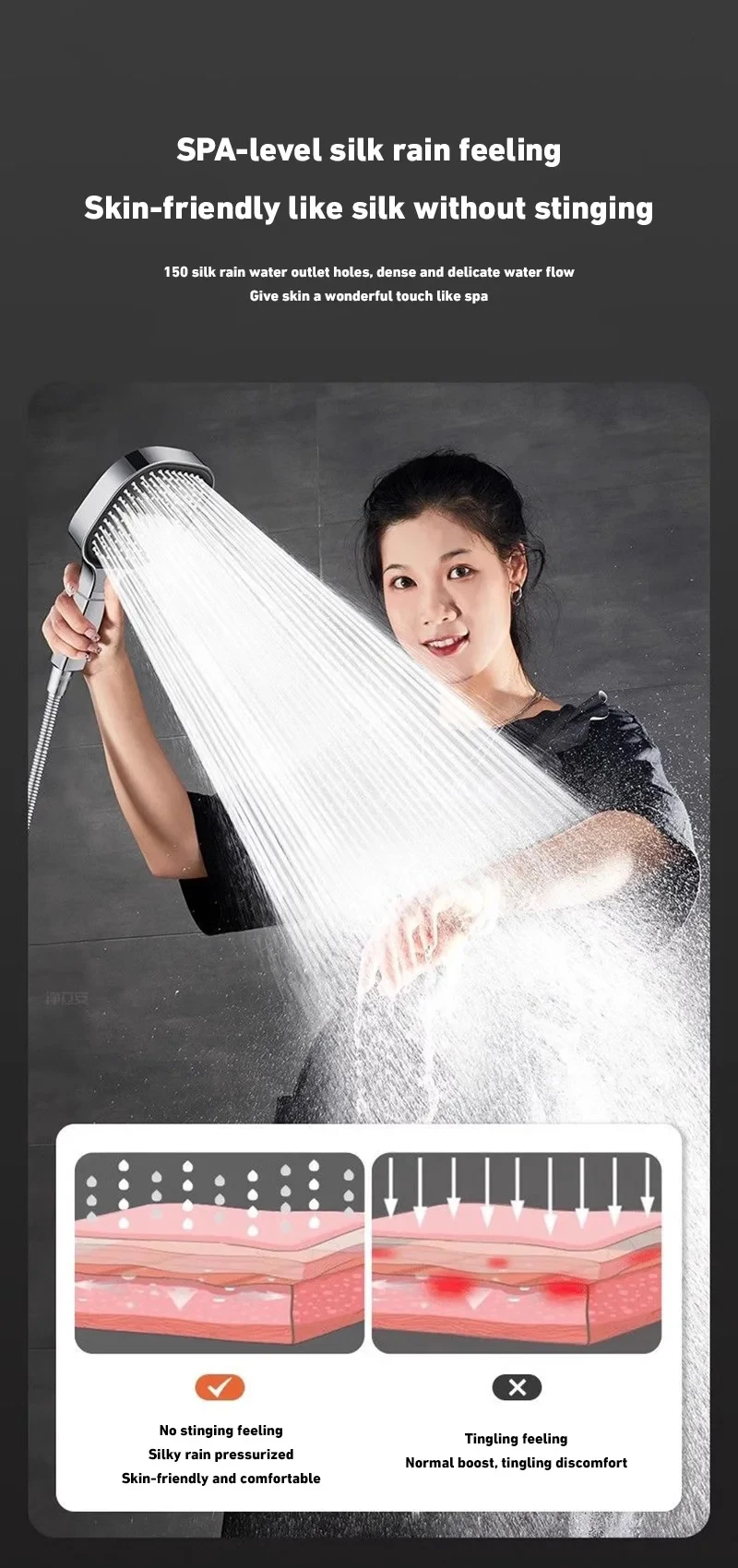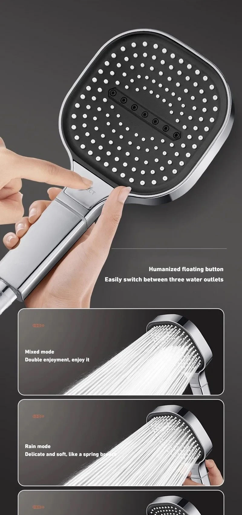 3 MODES JET TÊTE DOUPE D’ALTE PRESSURE : cette pomme de douche à main utilise une technologie haute pression avancée pour augmenter la pression de l’eau.Avec 3 modes de jet, il convient au douche, au massage de la tête, au bain de bébé et au bain pour animaux de compagnie.