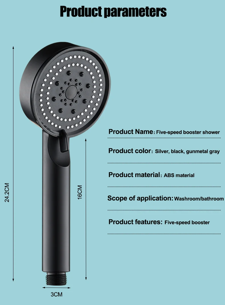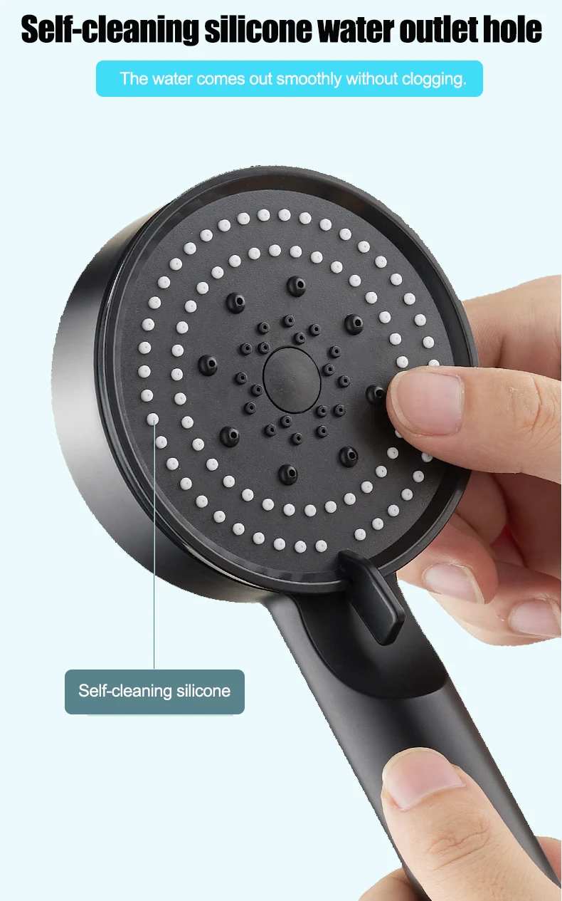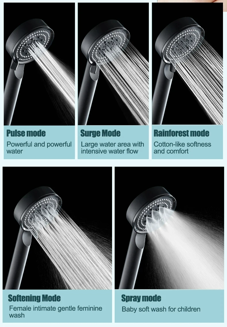 Pommeau de douche à haute pression réglable, pommeau de bain, économie d'eau, accessoires pour la maison, 5 modes, mode pluie, noir