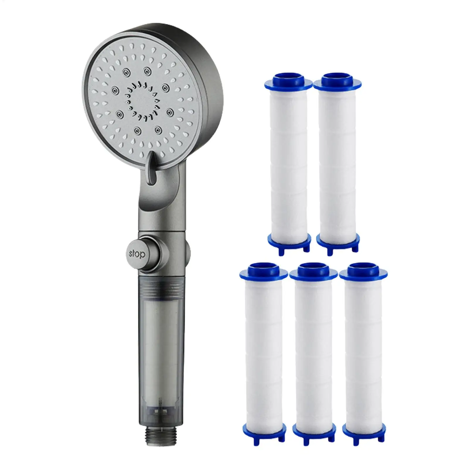 3. Purification intégrée : la pomme de douche est dotée d’un filtre intégré multicouche qui élimine efficacement la rouille et les particules, assurant une eau plus propre pour vos douches, avec cinq cartouches de remplacement incluses pour une utilisation et une commodité prolongées.